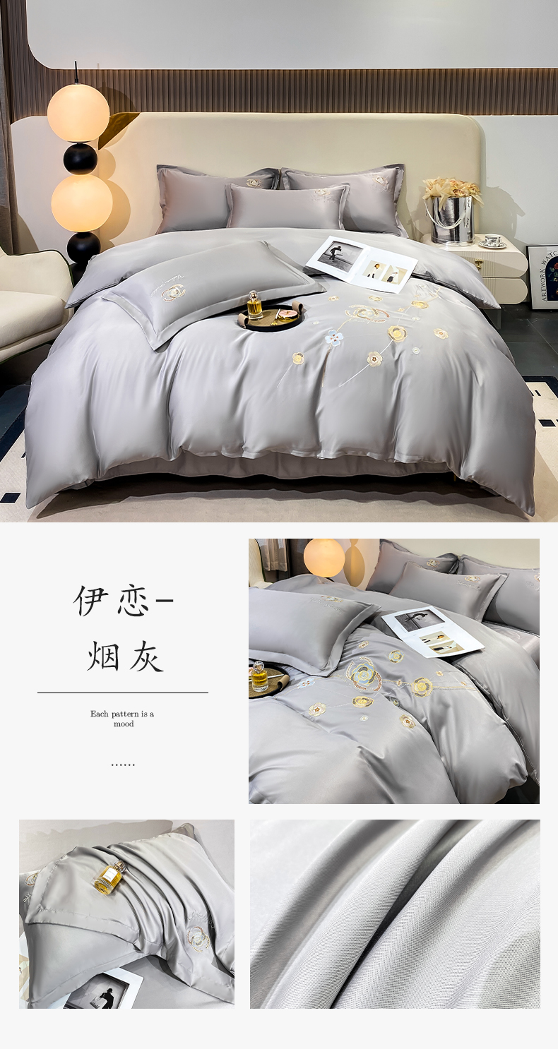 商品名称:慧菲 2025新款轻奢水洗天丝四件套-伊恋 伊恋-烟灰