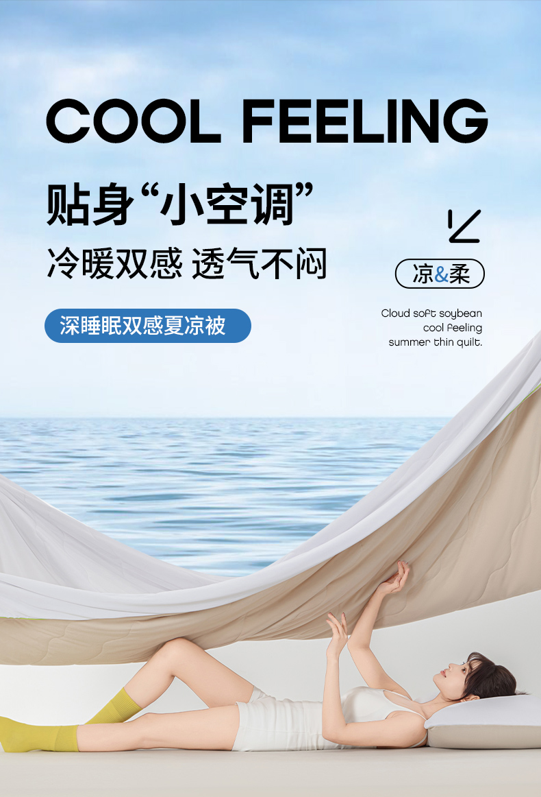 商品名称:吾诺 2025 锦氨凉感夏被双感被大豆夏被子被芯凉感丝夏被瓜瓜被 米白-浅驼