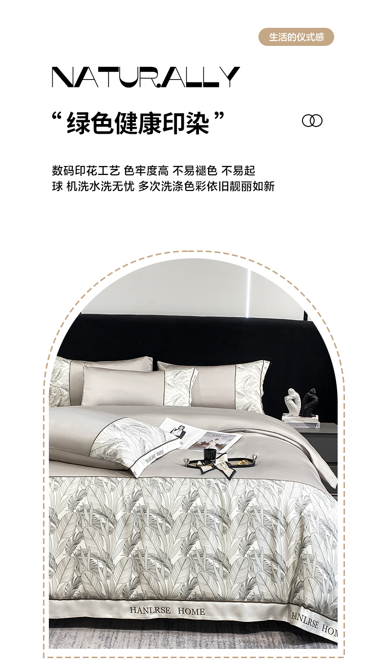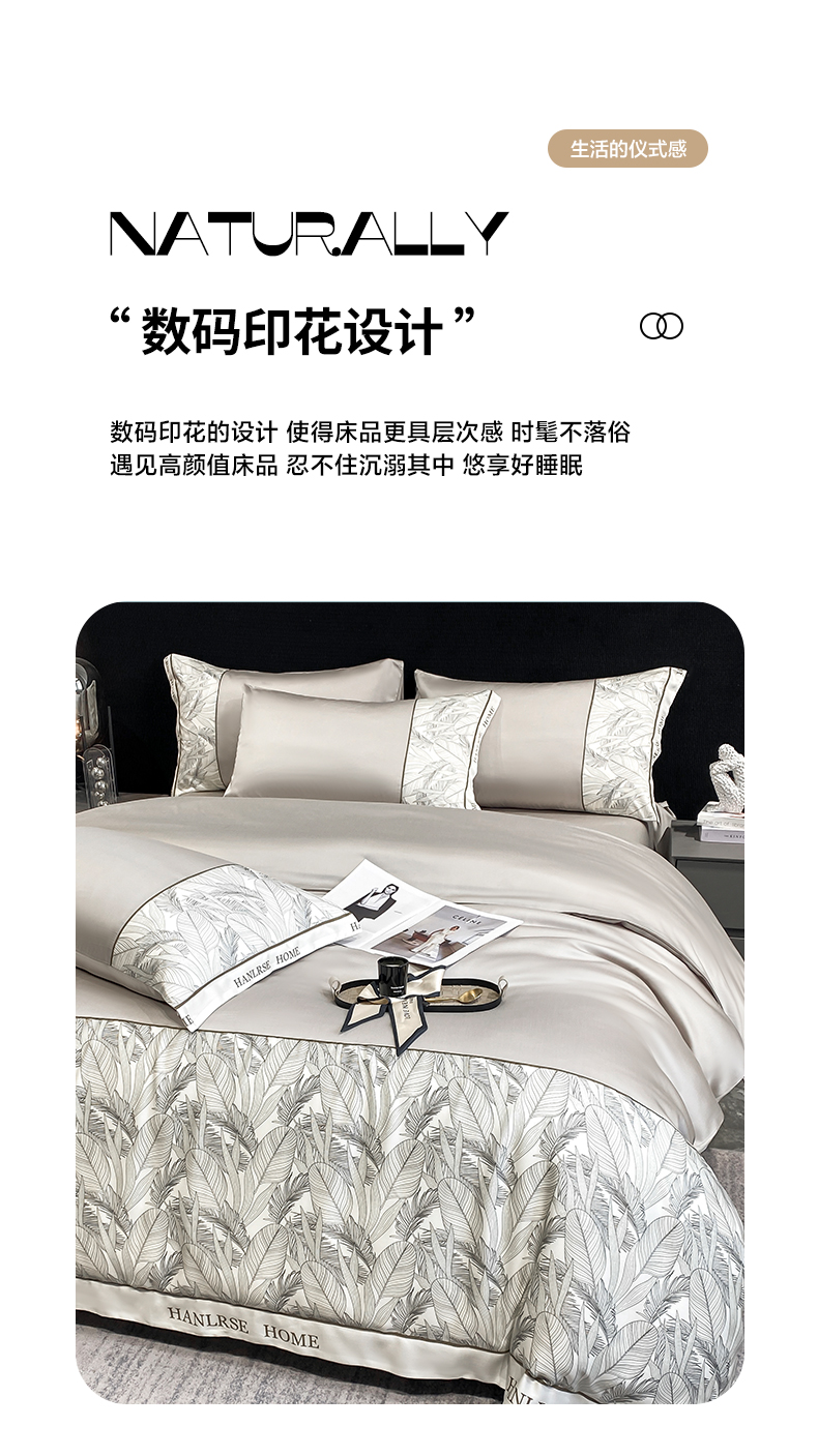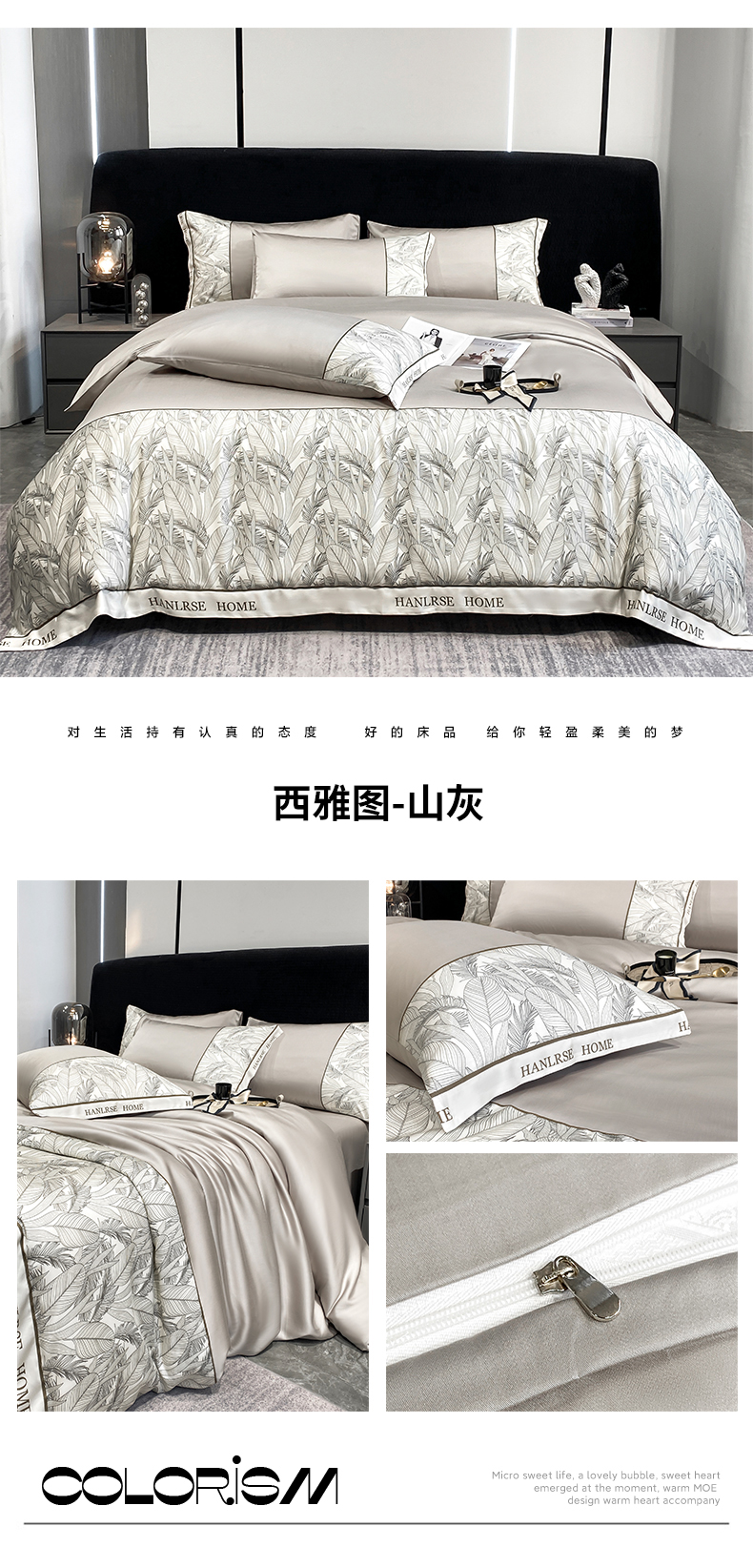 商品名称:花愿(原花纪) 2025新款水洗冰丝印花四件套 西雅图 山灰
