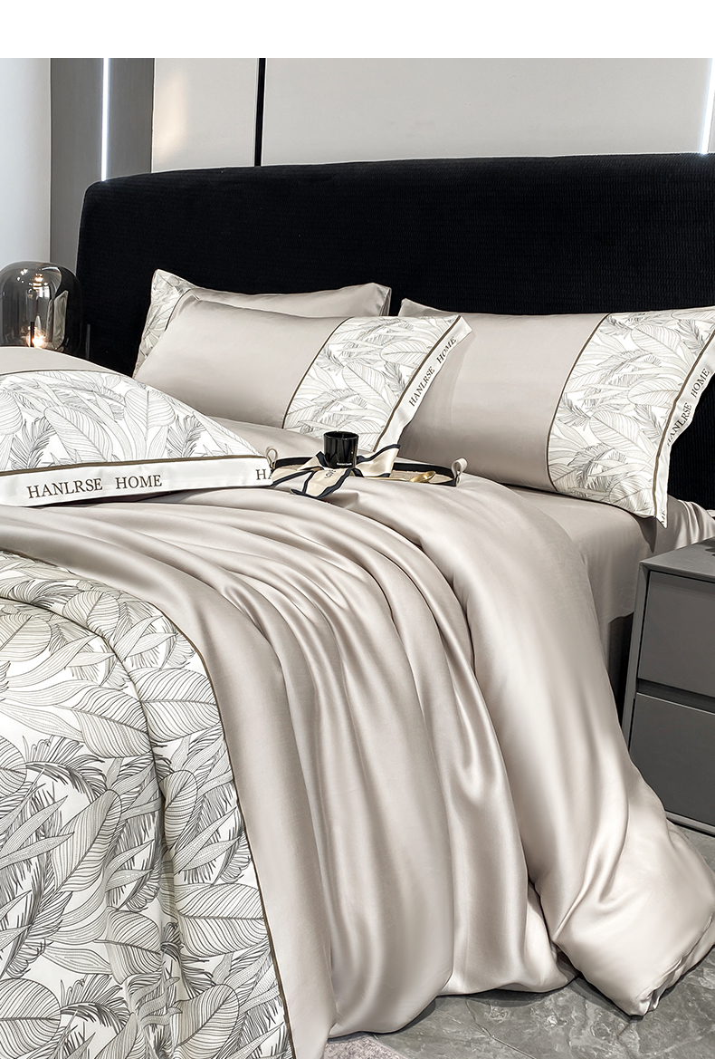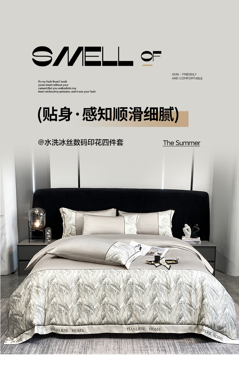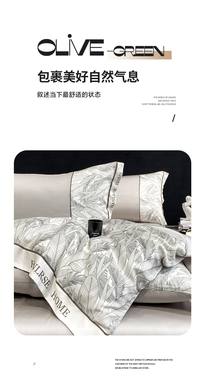 商品名称:花愿(原花纪) 2025新款水洗冰丝印花四件套 西雅图 山灰