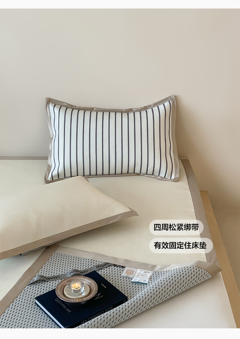 商品名称:三味舒屋 2025新款韩风简约抗菌防螨900D高端养生冰藤席 床笠 树莓粉