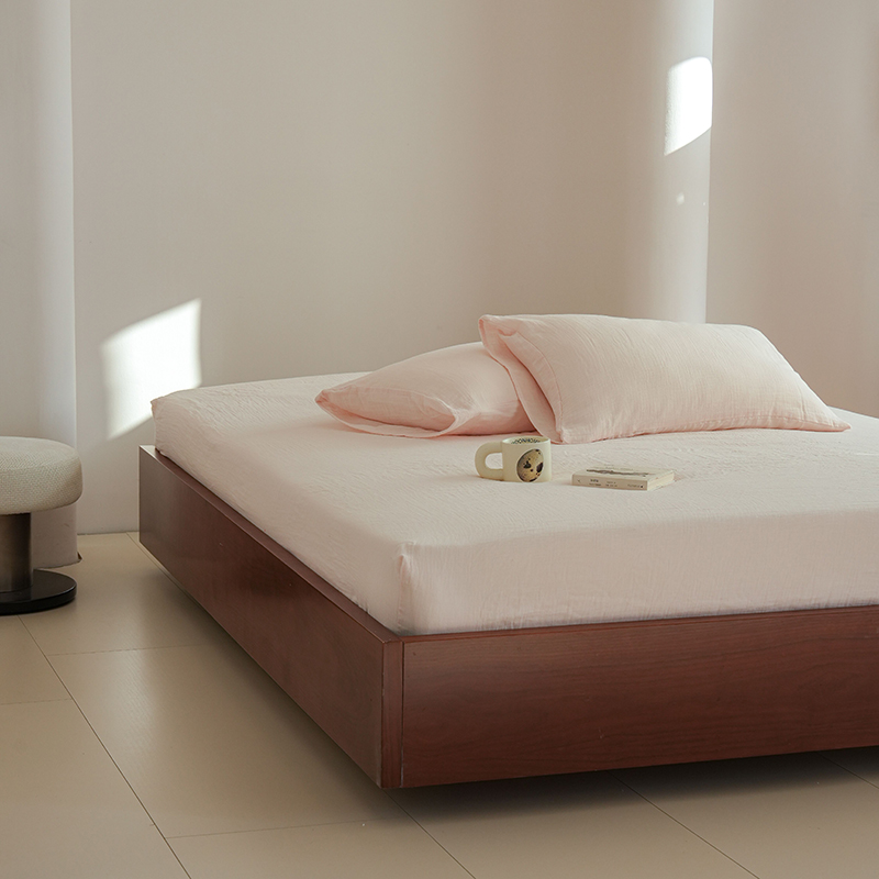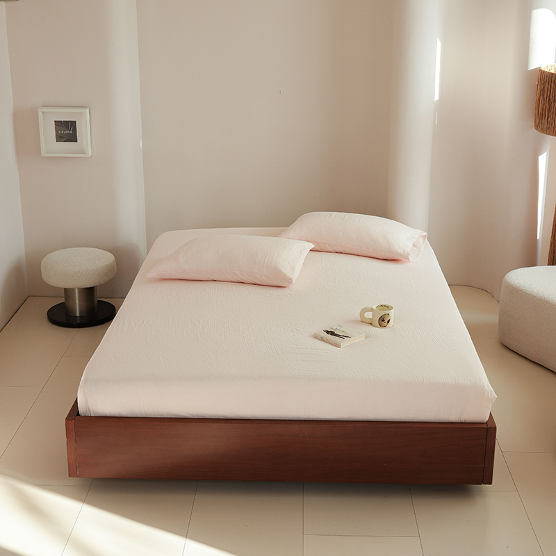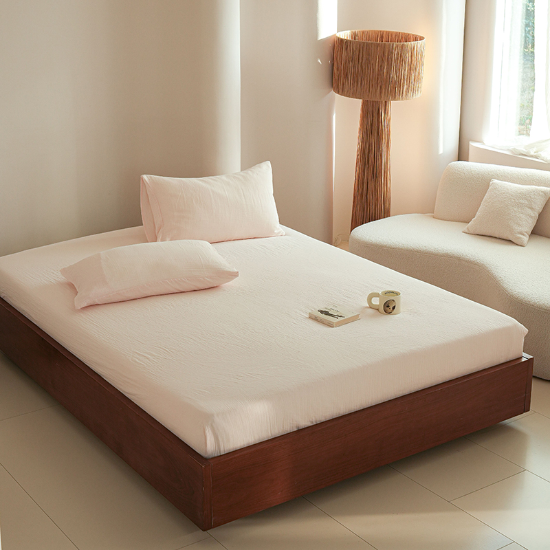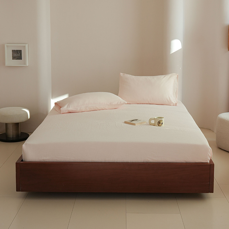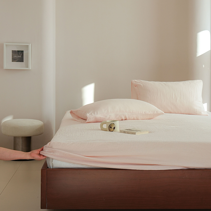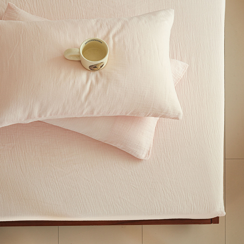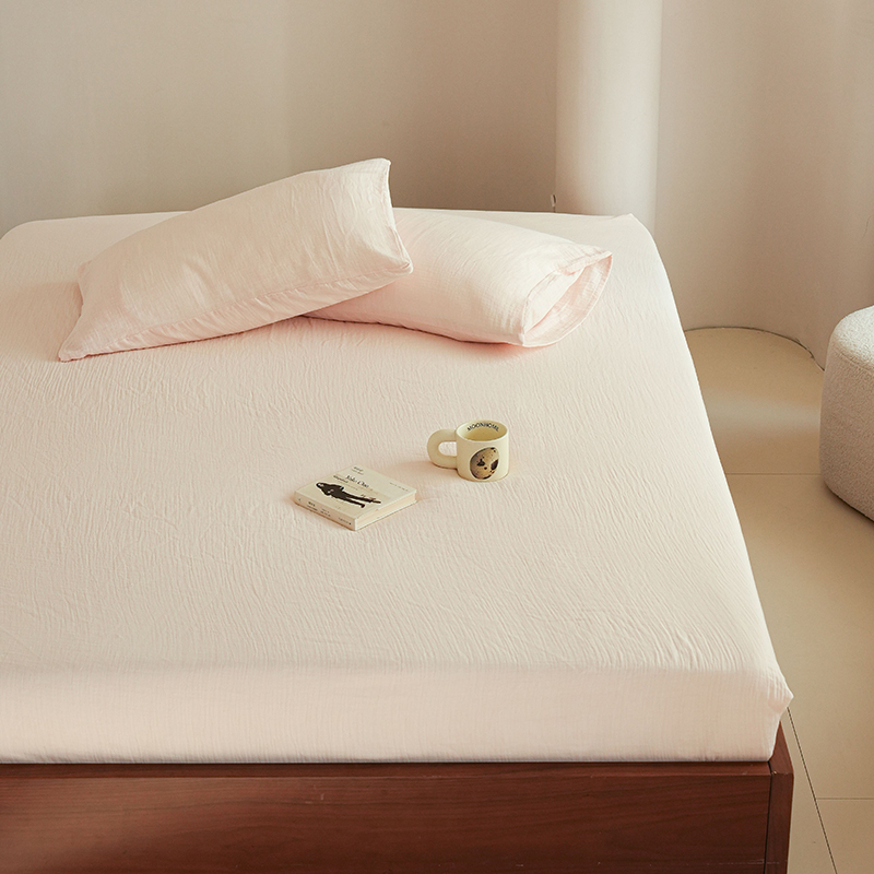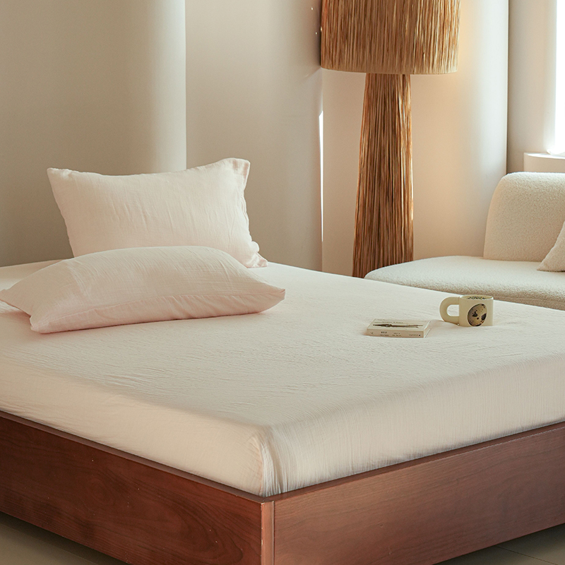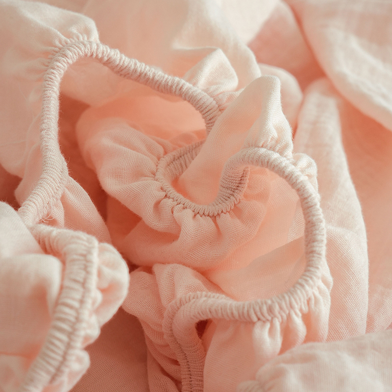 简纯主义 2025新款全棉有机雾感纱双层皱皱纱系列单床笠棉花糖