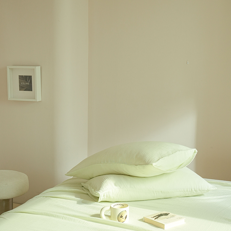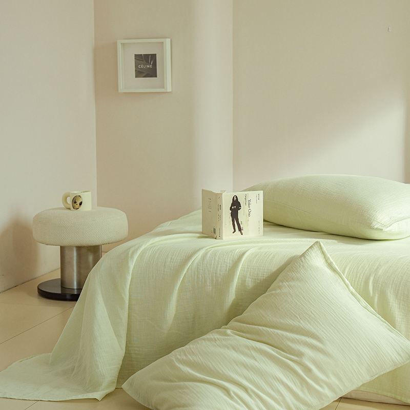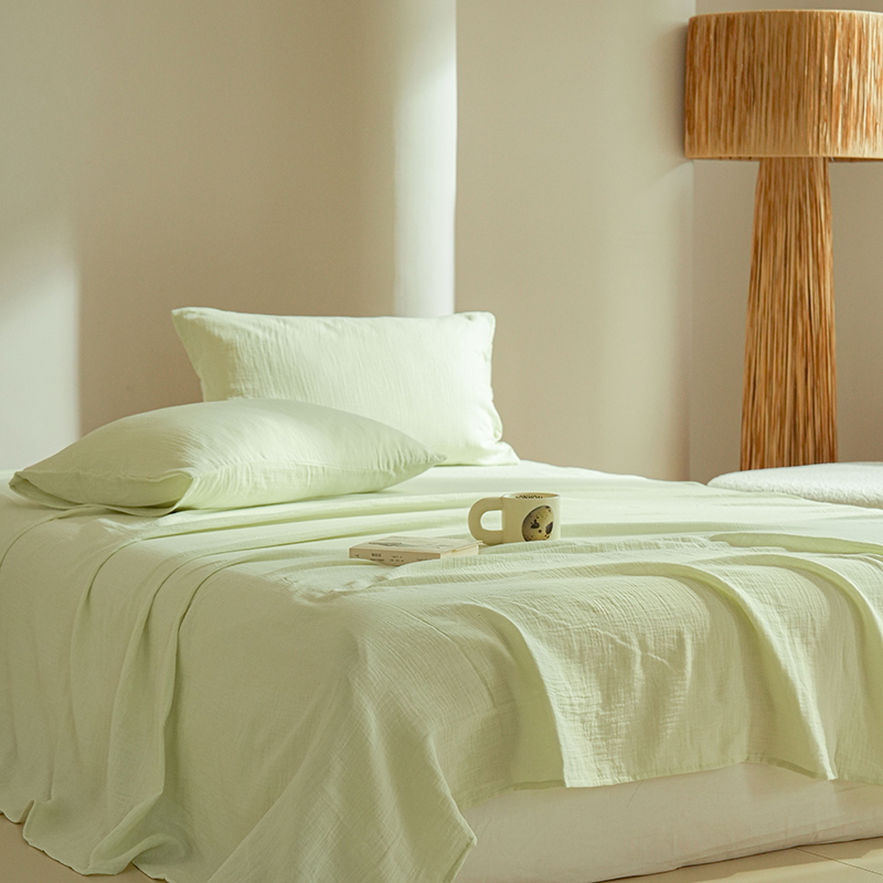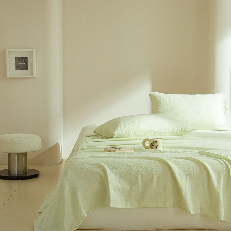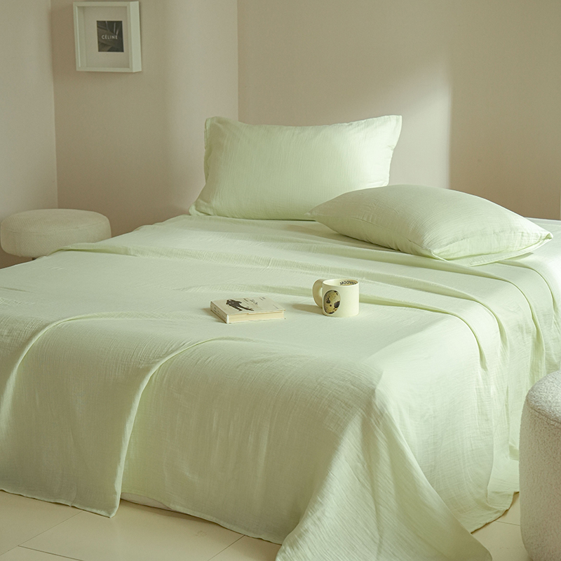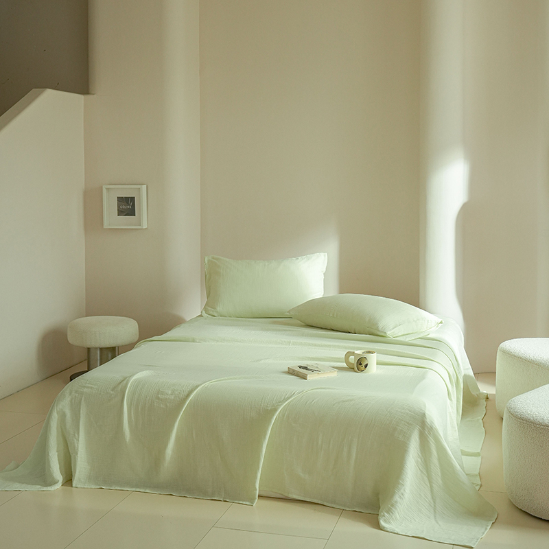 简纯主义 2025新款全棉有机雾感纱双层皱皱纱系列单床单绿豆