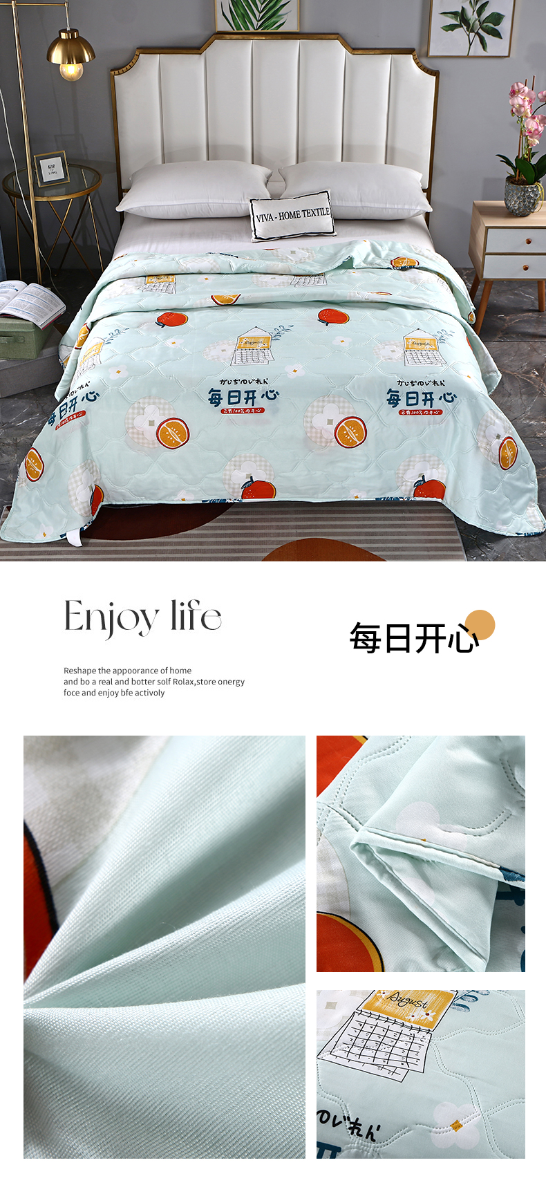 富之纹家纺 2025新款钻石绒亲肤棉超声波夏被夏凉被空调被压花礼品直播引流爆款 每日开心,每日开心