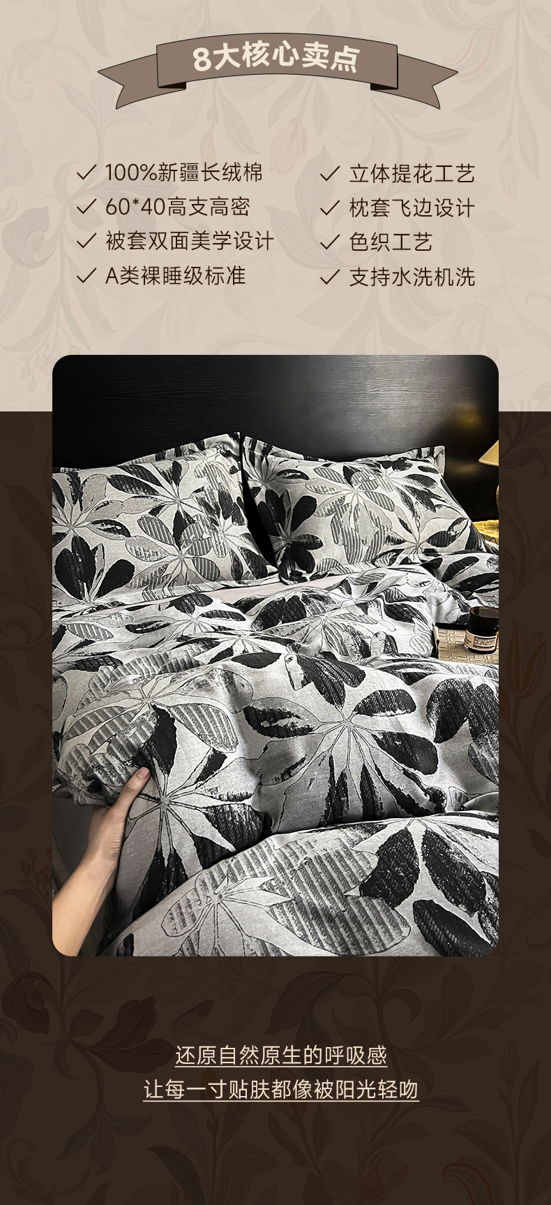 商品名称:倾慕家纺 2025新款60S提花全棉单品被套 拾秋深灰