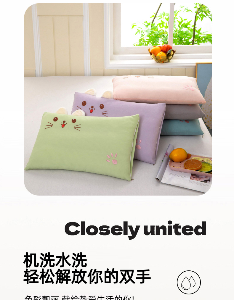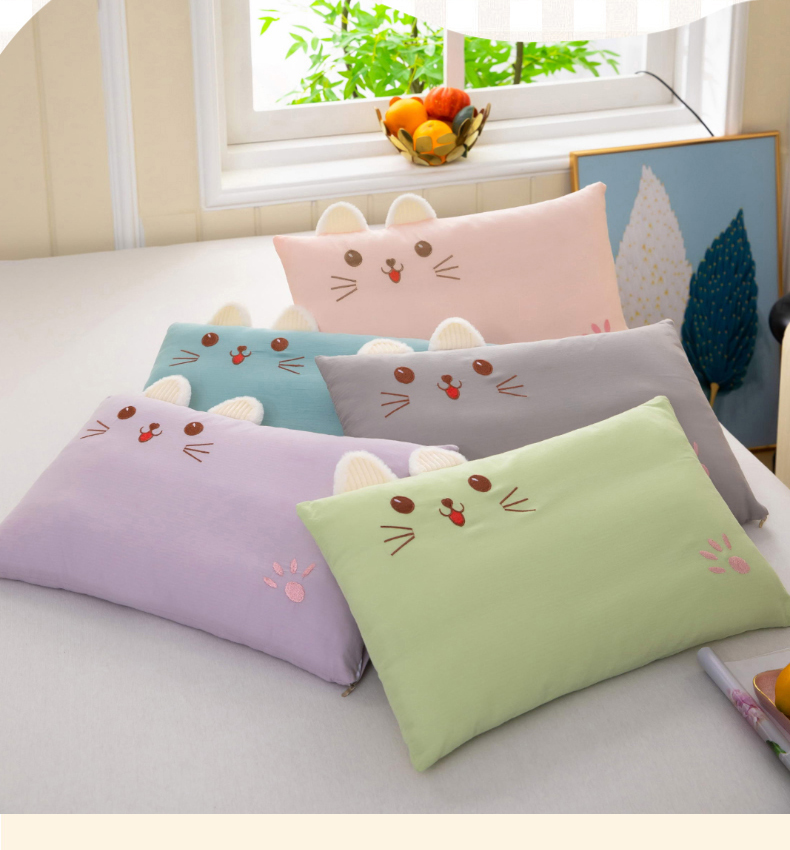 商品名称:(总)枕之坊 2025年新款水洗纯棉调皮猫水洗纯棉调皮猫羽丝枕 30*50