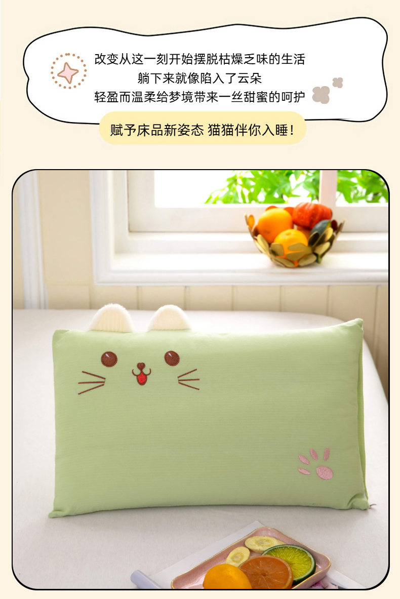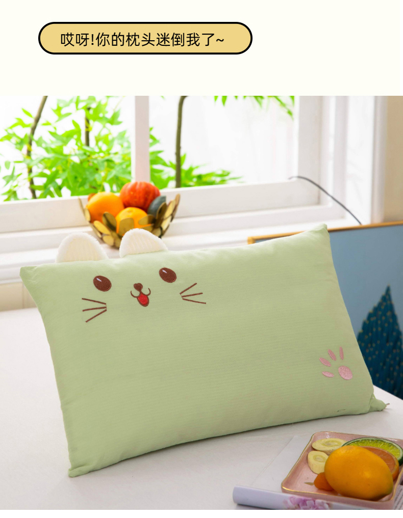 当前位置: 91家纺网 > 商品网购 > 婴童用品 > 婴童枕头/枕芯 > 九州枕芯2025新款水洗纯棉调皮猫儿童枕 枕头枕芯 绿色30*50cm/只