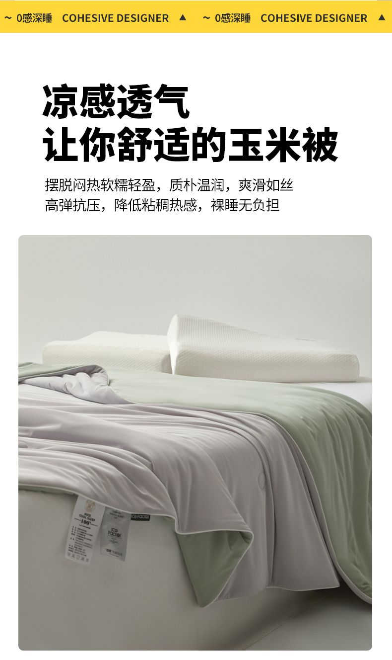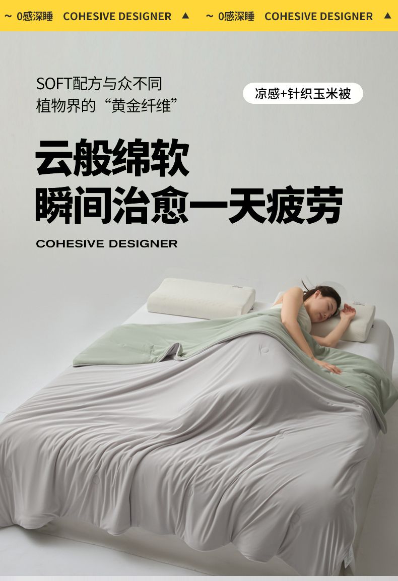 商品名称:帕拉美拉 2025新款凉感丝夏被针织棉高克重玉米聚乳酸双拼两用被 浅灰+甜蜜绿