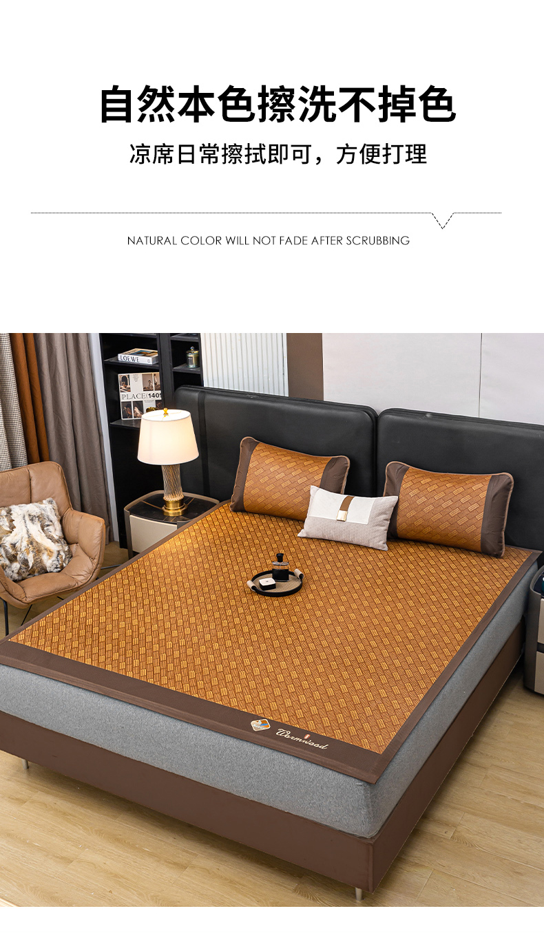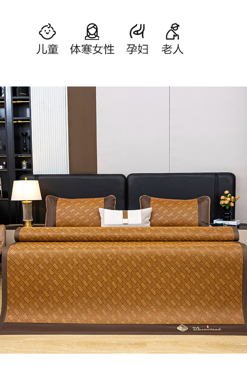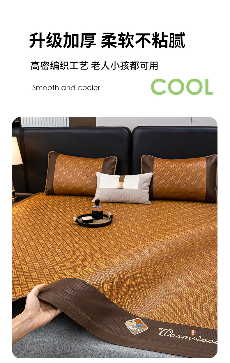 商品名称:81号家纺 2025新款古藤席三件套凉席三件套 古藤席-方格咖