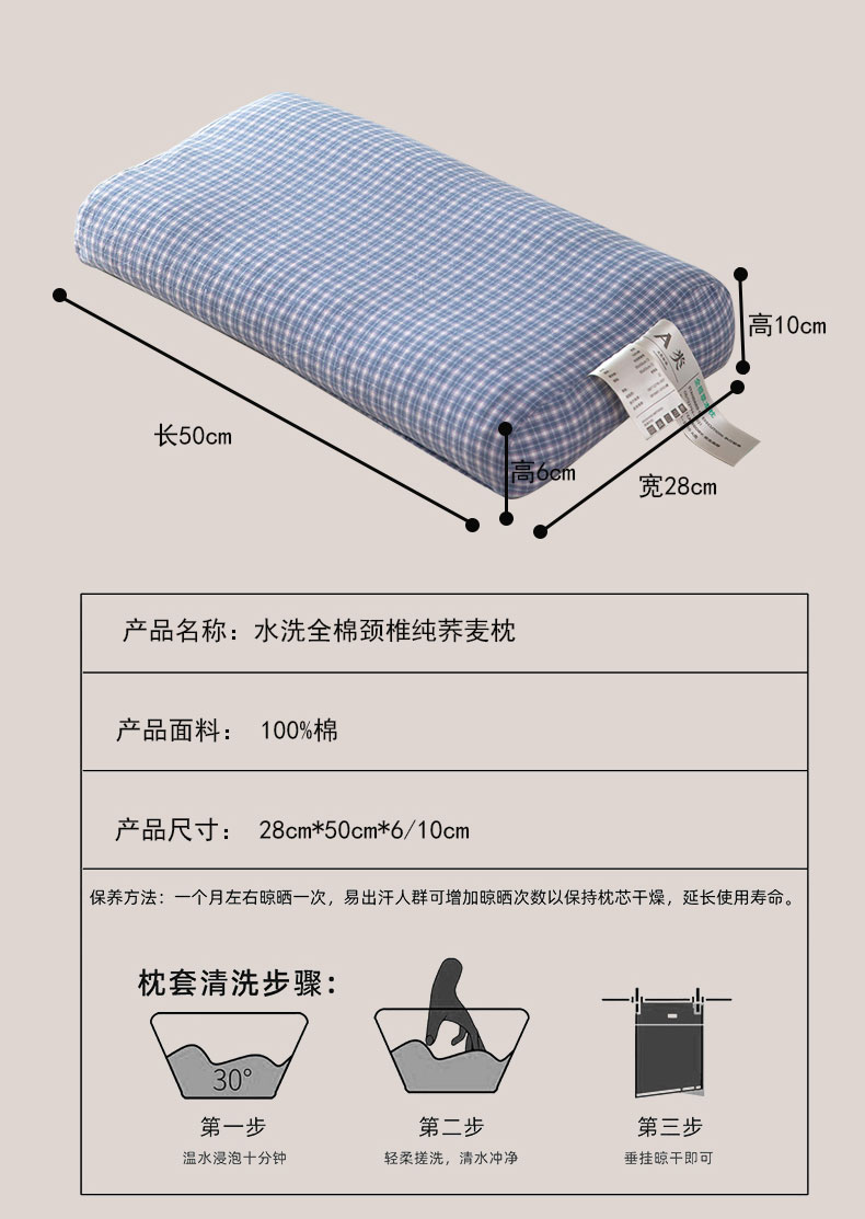 商品名称:(总)九州枕芯 2025新款水洗全棉纯棉高低颈椎纯荞麦枕枕头枕芯