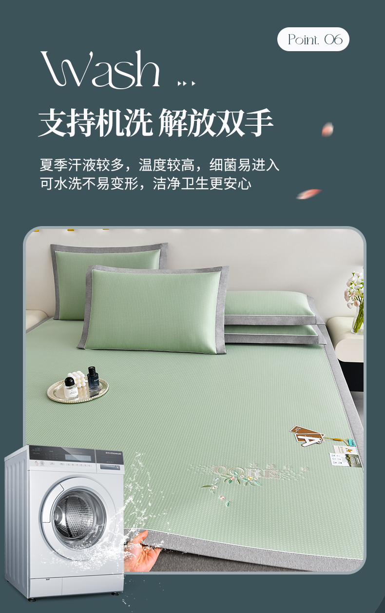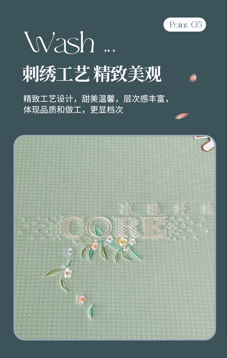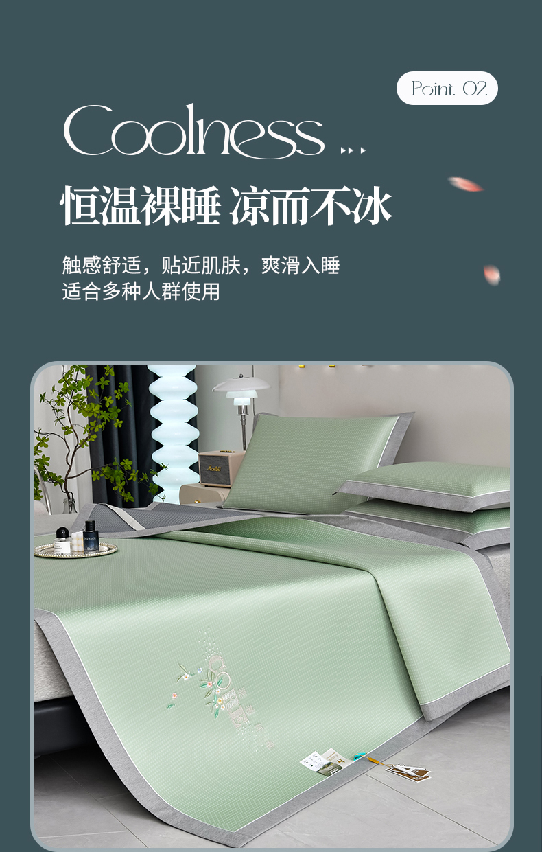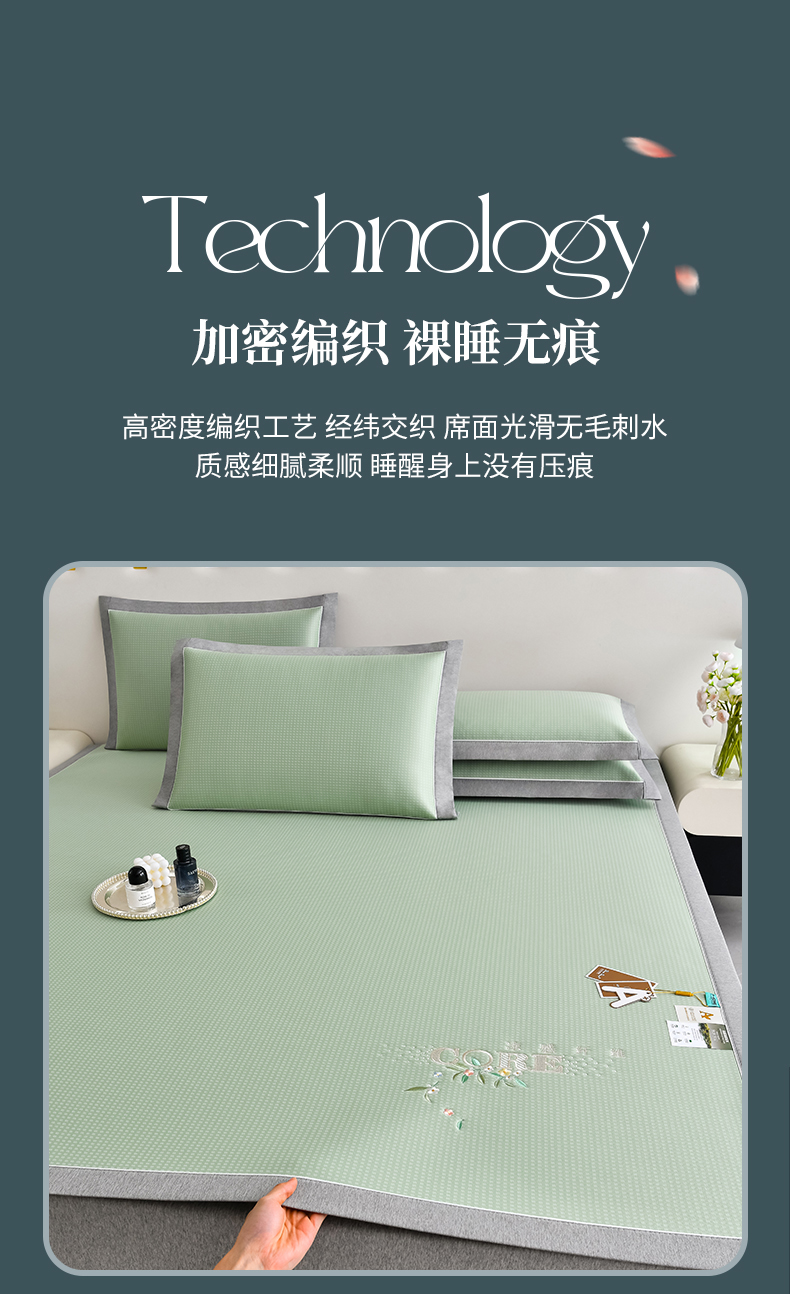 商品名称:小牛席业 2025新款花漾芯语绣花凉感冰丝席系列 绿色