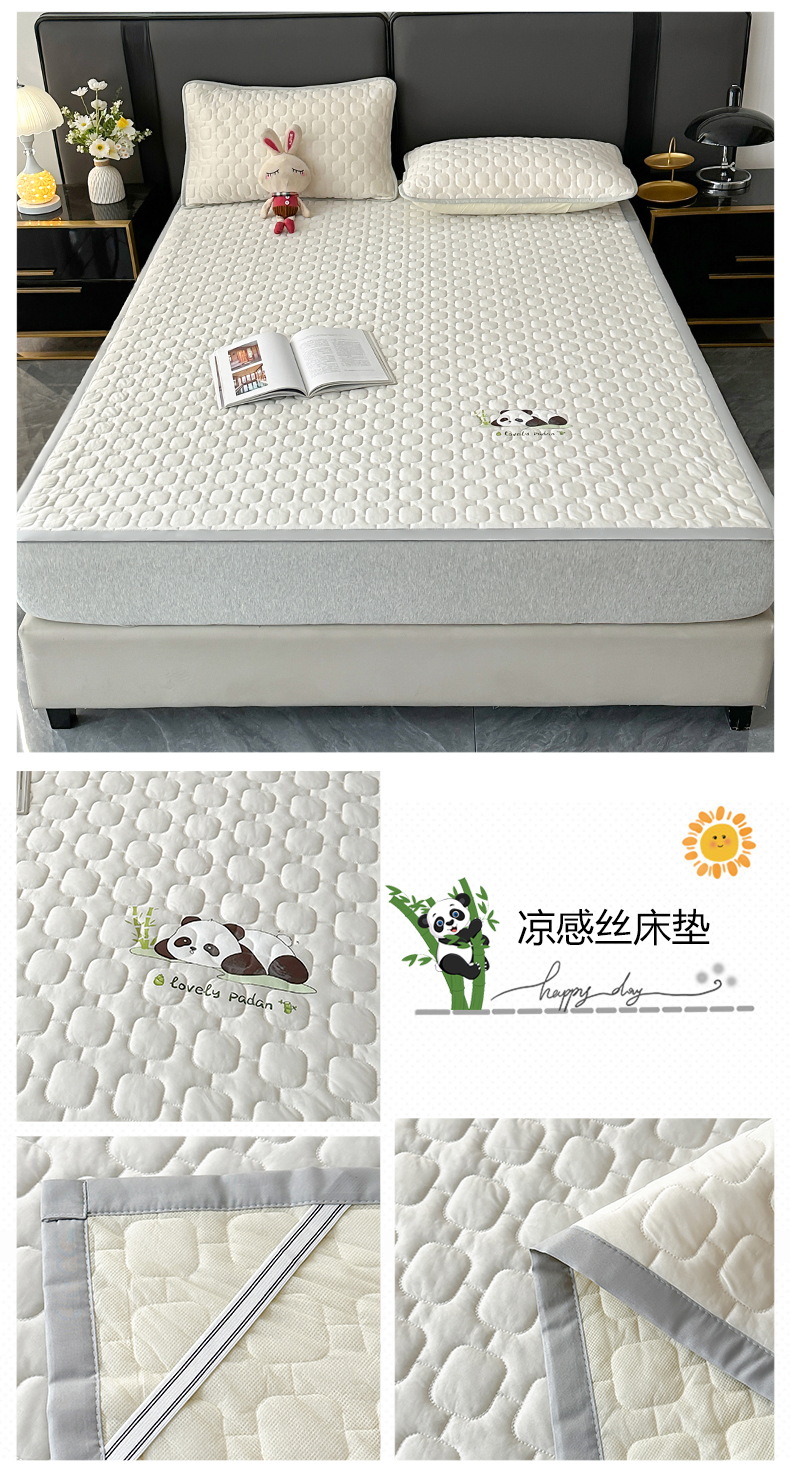 (总)爱洛家纺 2025新款凉感丝羽丝棉床垫,熊猫-豆沙绿,熊猫-蓝,熊猫-奶白,熊猫-浅灰,熊猫-浅天蓝