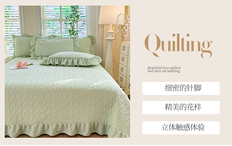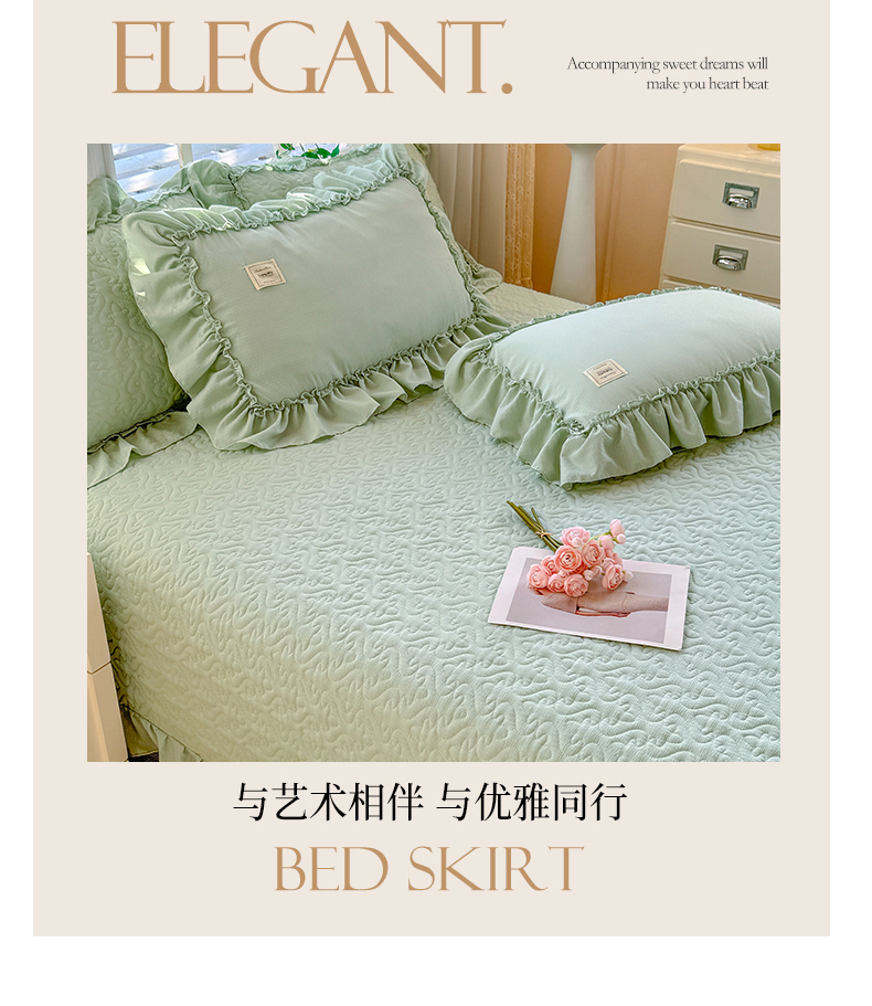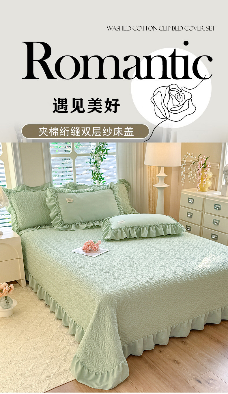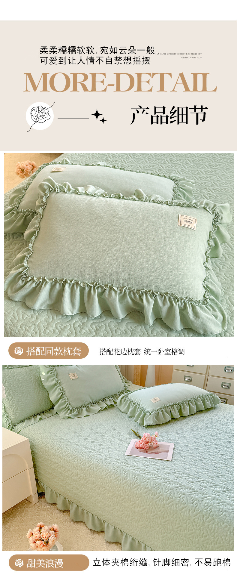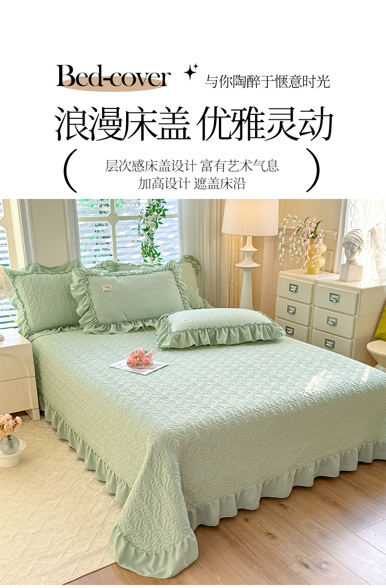 当前位置: 91家纺网 > 商品网购 > 床品套件 > 三件套 > 花香四季家纺 2025新款泡芙小姐双层纱华夫格柔棉夹棉绗缝床盖床垫子单件三件套 泡芙小姐-绿
