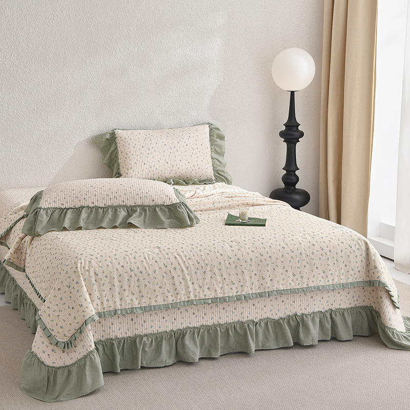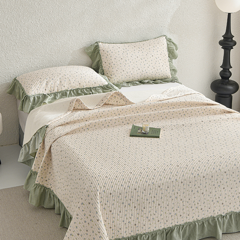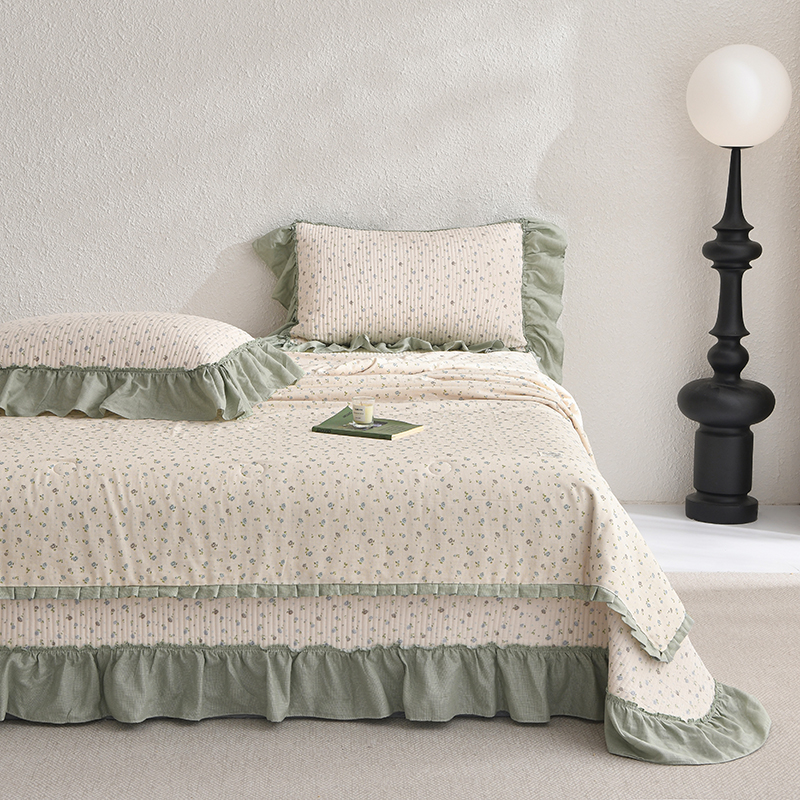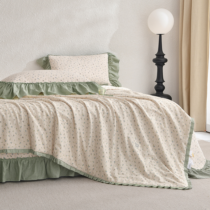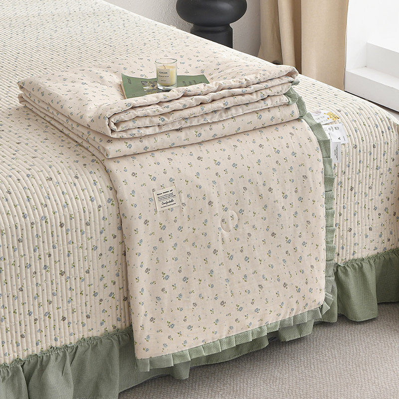 商品名称:有货 2025春夏新款全棉纯棉双层纱夏被夏凉被空调被+床盖三件套 茶艺