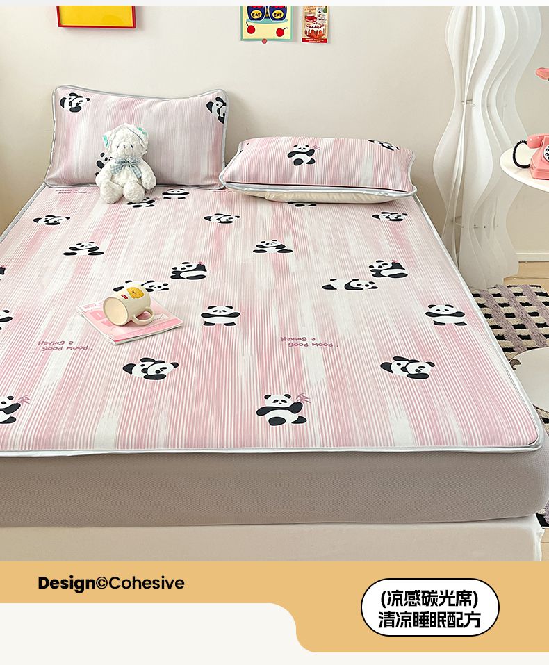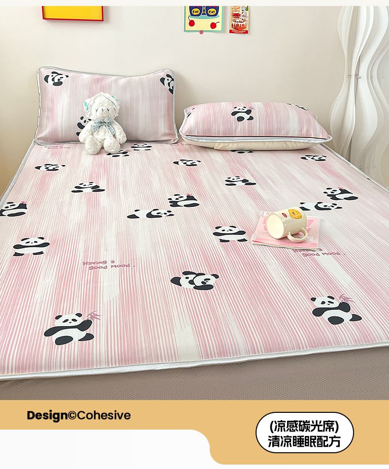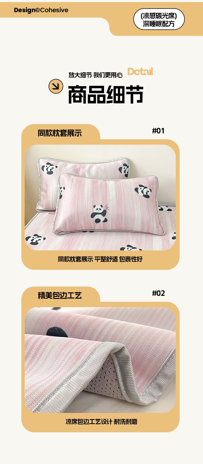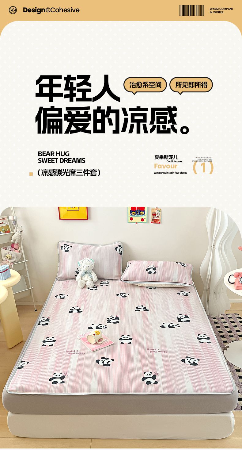 商品名称:摩妮卡 2025新款数码碳光席冰丝席三件套床笠款 熊猫团子-粉