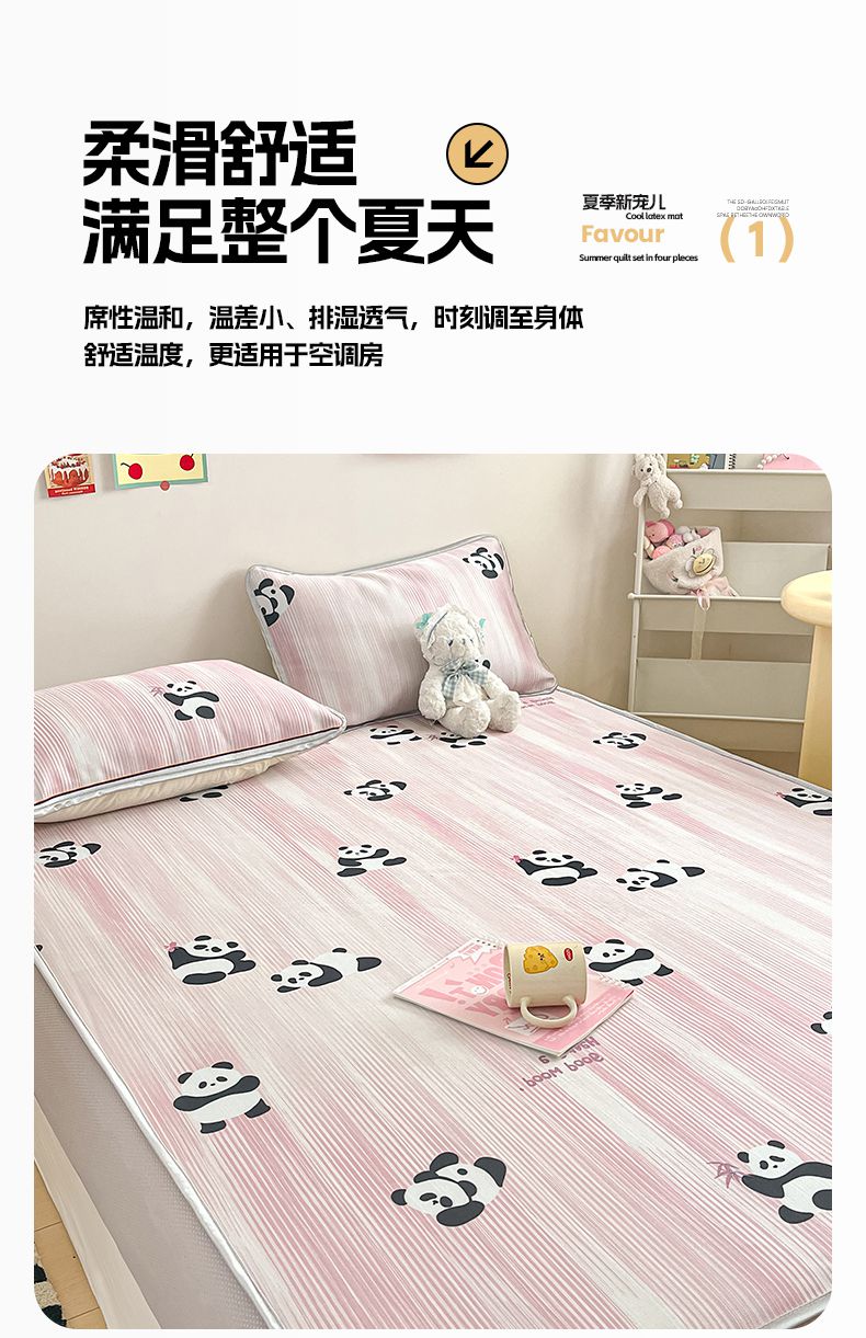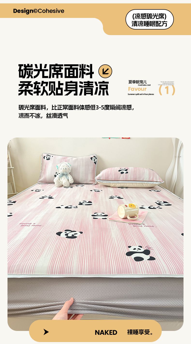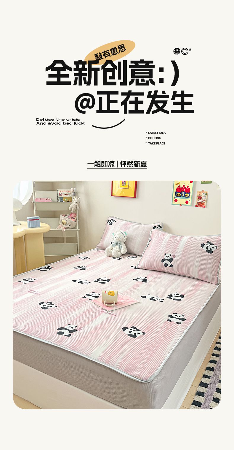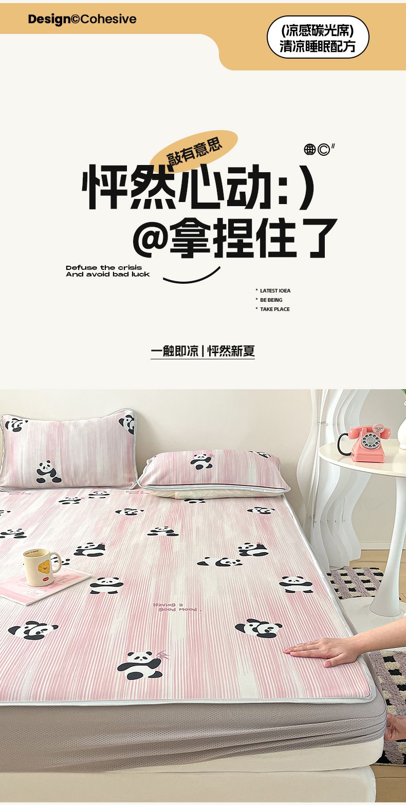 商品名称:摩妮卡 2025新款数码碳光席冰丝席三件套床笠款 熊猫团子-粉