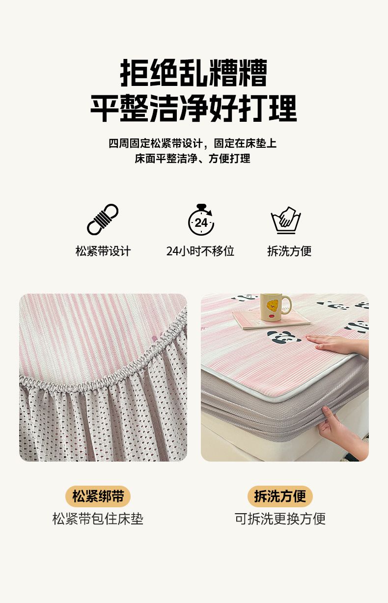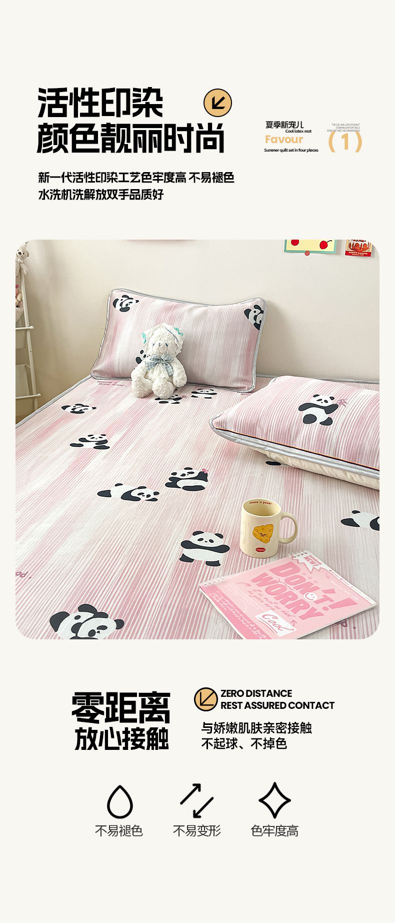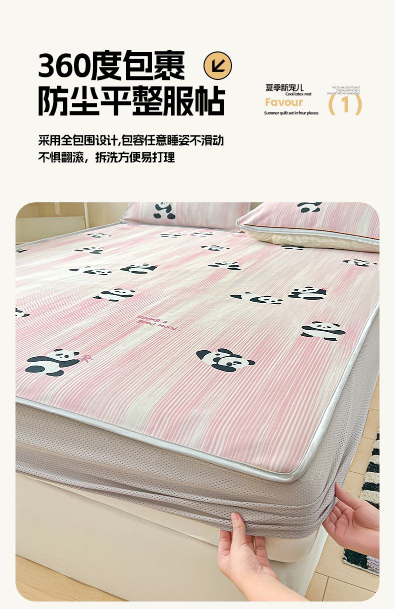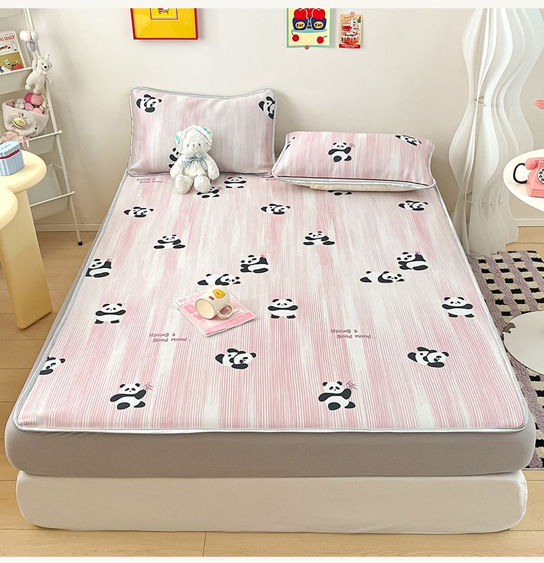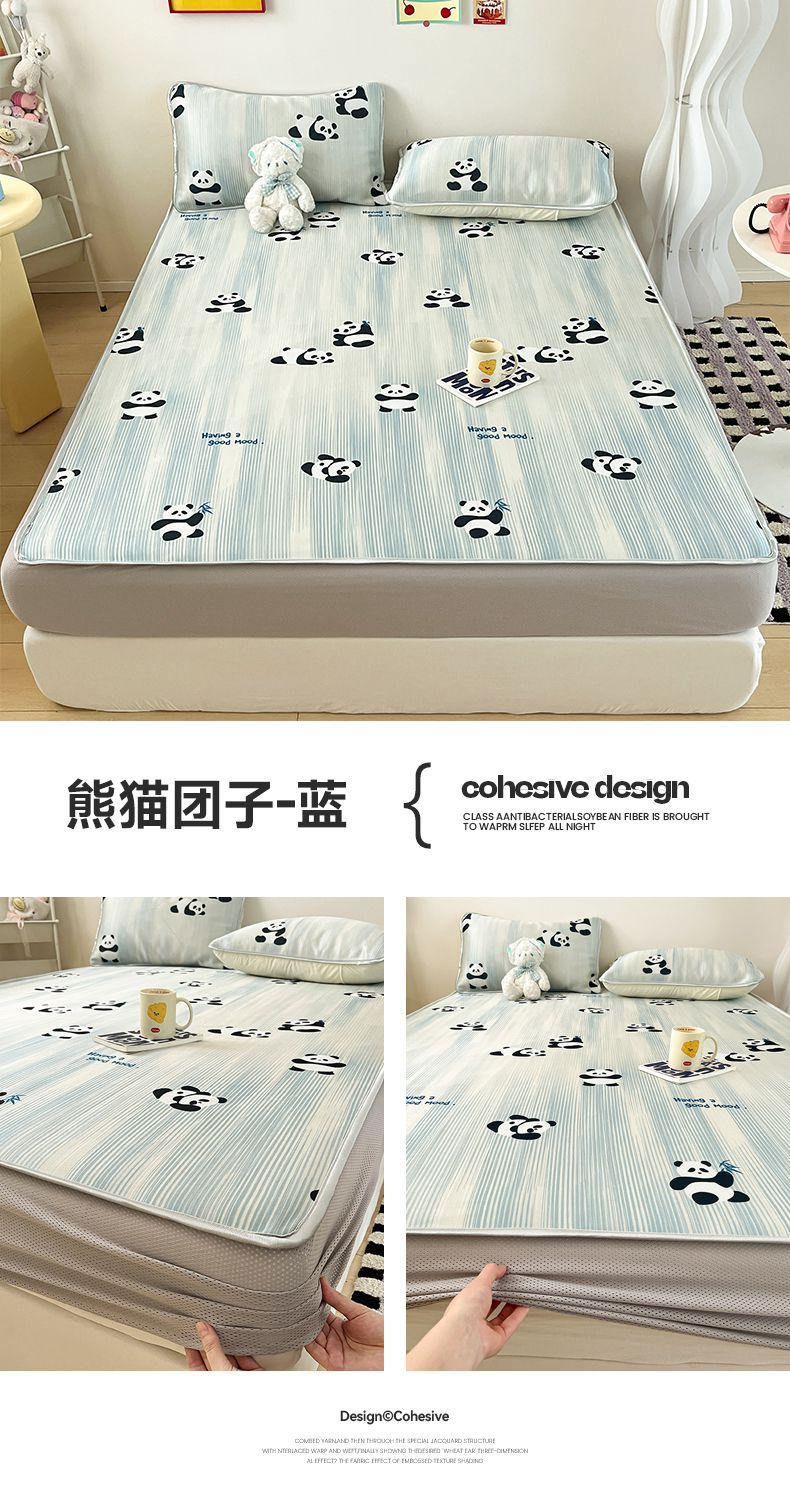 商品名称:摩妮卡 2025新款数码碳光席冰丝席三件套床笠款 熊猫团子-粉