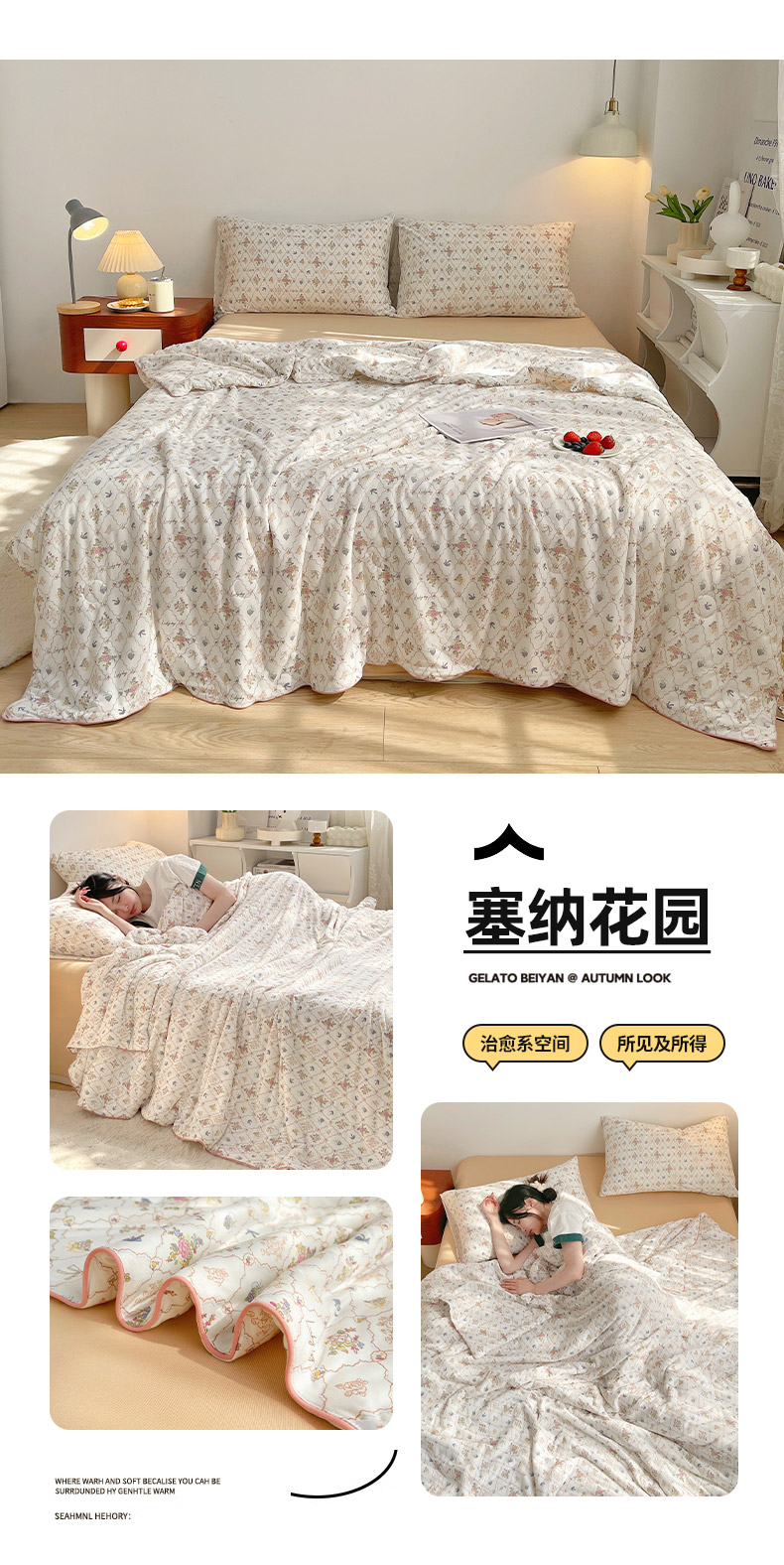 • 91家纺网 家纺一手货源 找家纺 简爱 2025新款A类针织棉大豆纤维夏被 塞纳花园