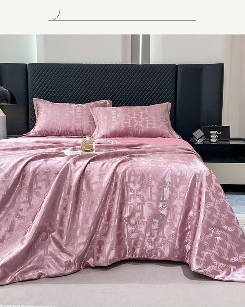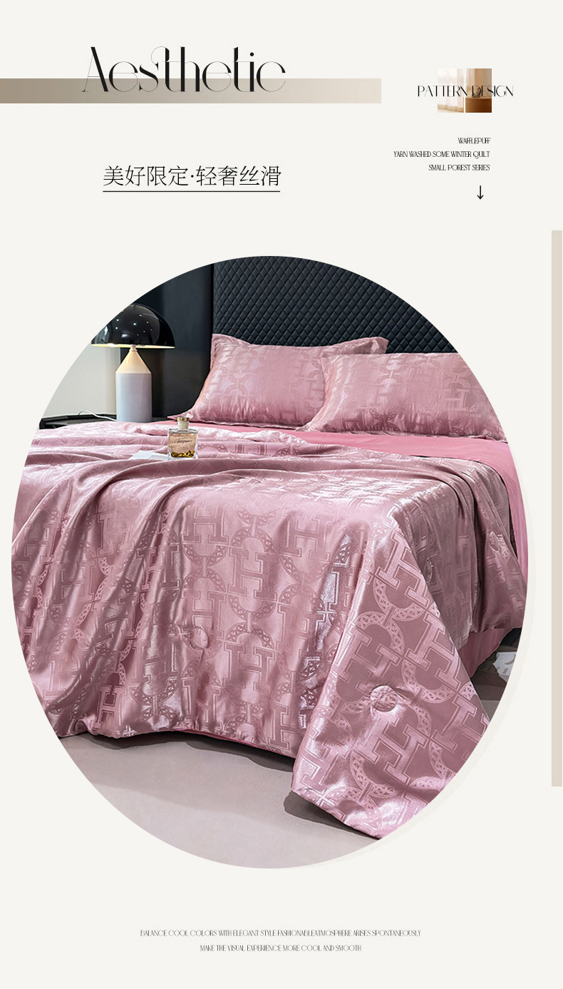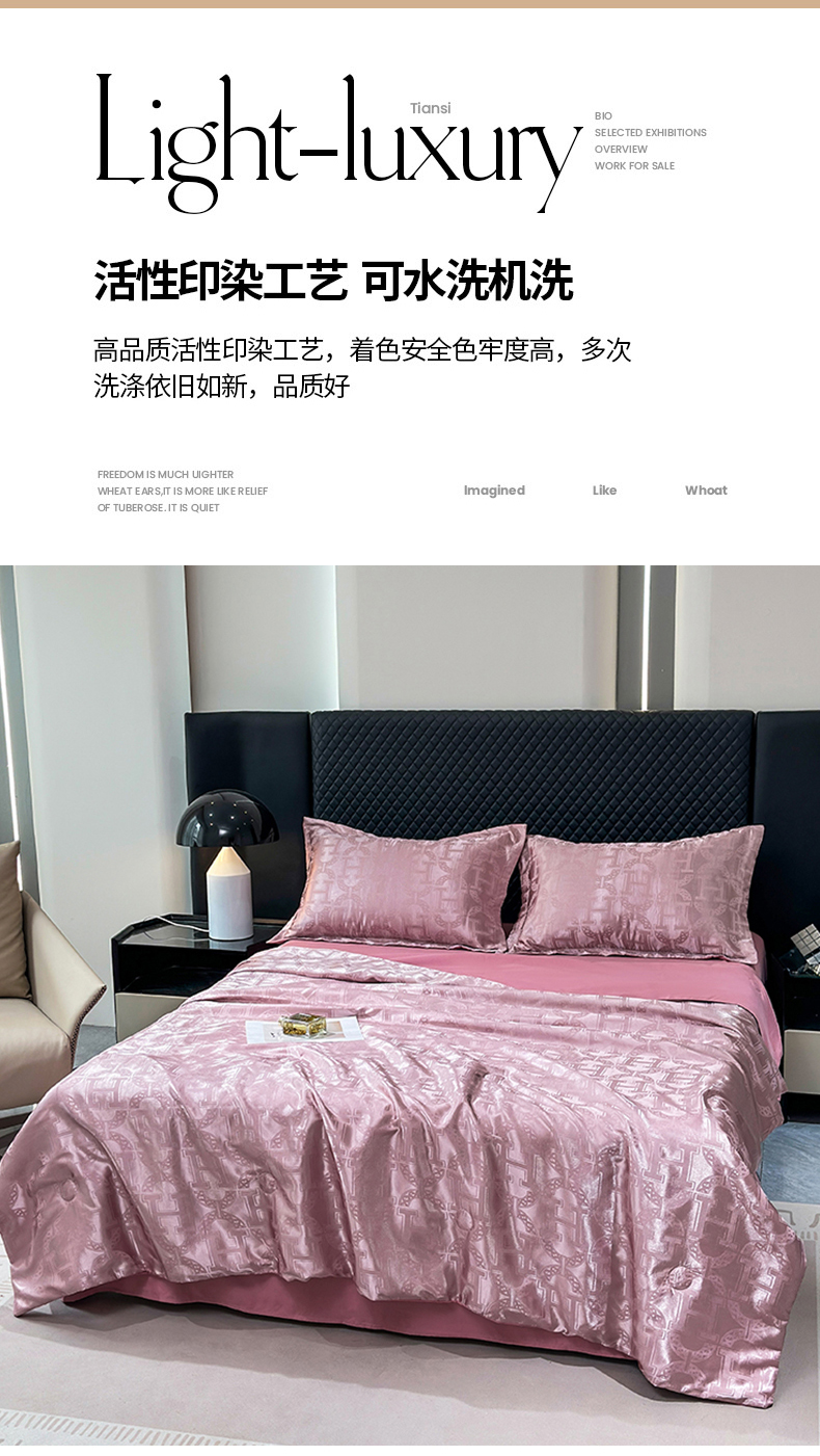 (总)莱欧纳家纺 2025新款提花夏被四件套,豆沙,灰色,香槟,紫色