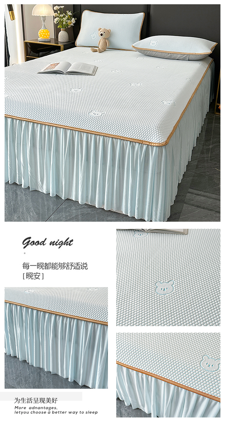 商品名称:爱洛家纺 2025新款凉感丝豆豆床裙席 浅天蓝小熊