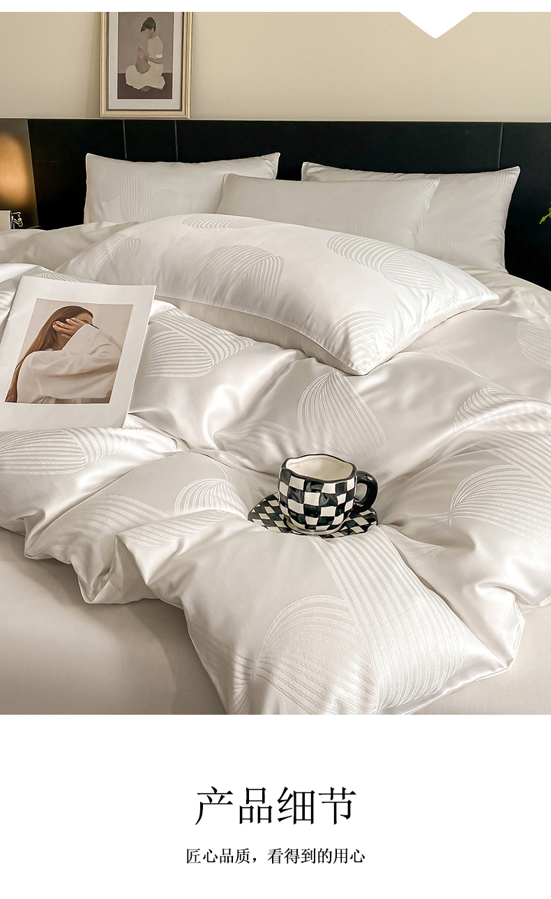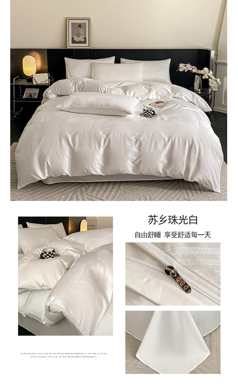商品名称:琪格格纺织 2025春夏新款莱赛尔天丝四件套 莱赛尔 苏乡珠光白