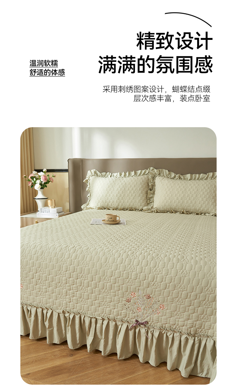 商品名称:2025新款A类多功能床盖单品单床盖床盖单件-情缘 芥末绿