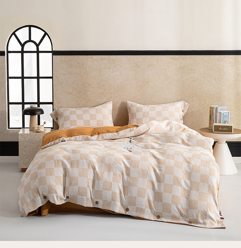 恋之语 2025新款亲肤舒适提花纽扣款四件套 格律时尚-粉