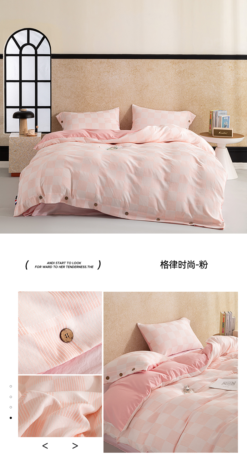 商品名称:恋之语 2025新款亲肤舒适提花纽扣款四件套 格律时尚-粉