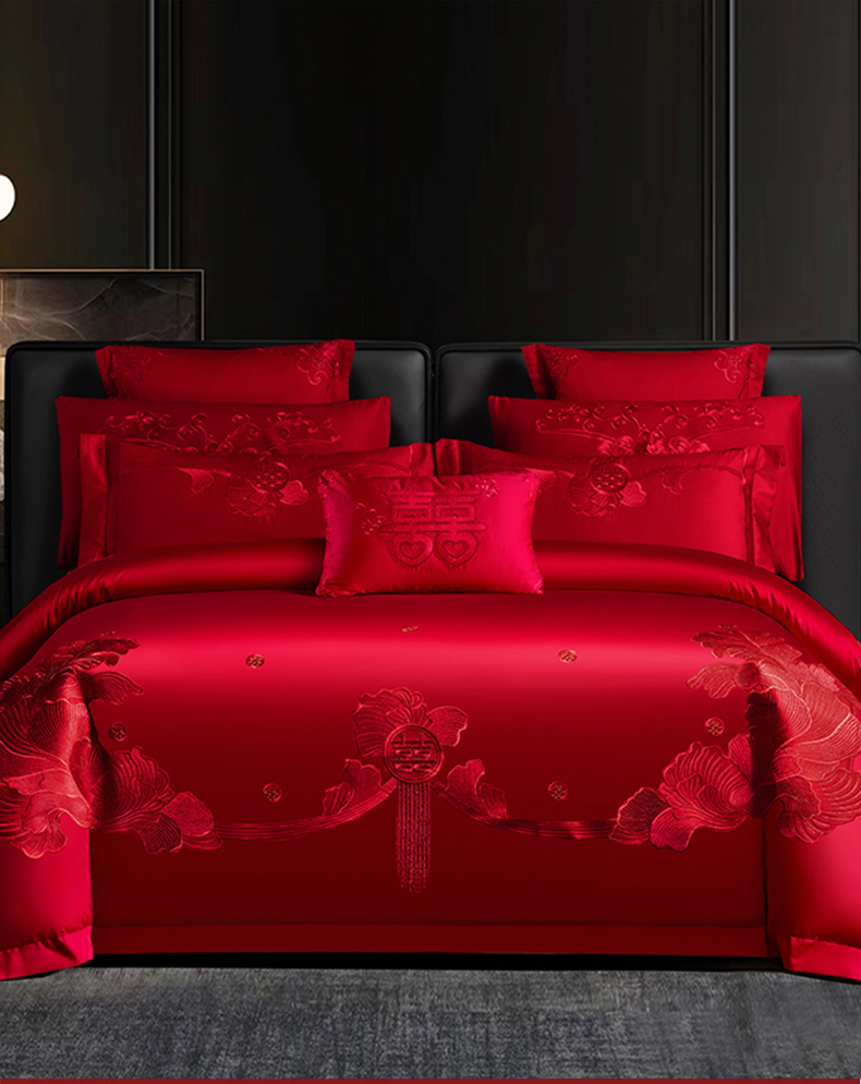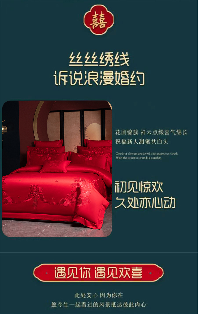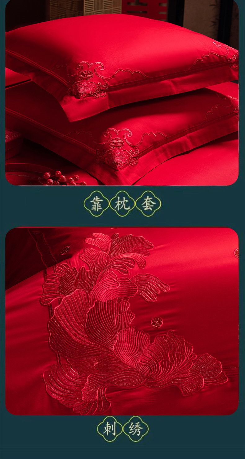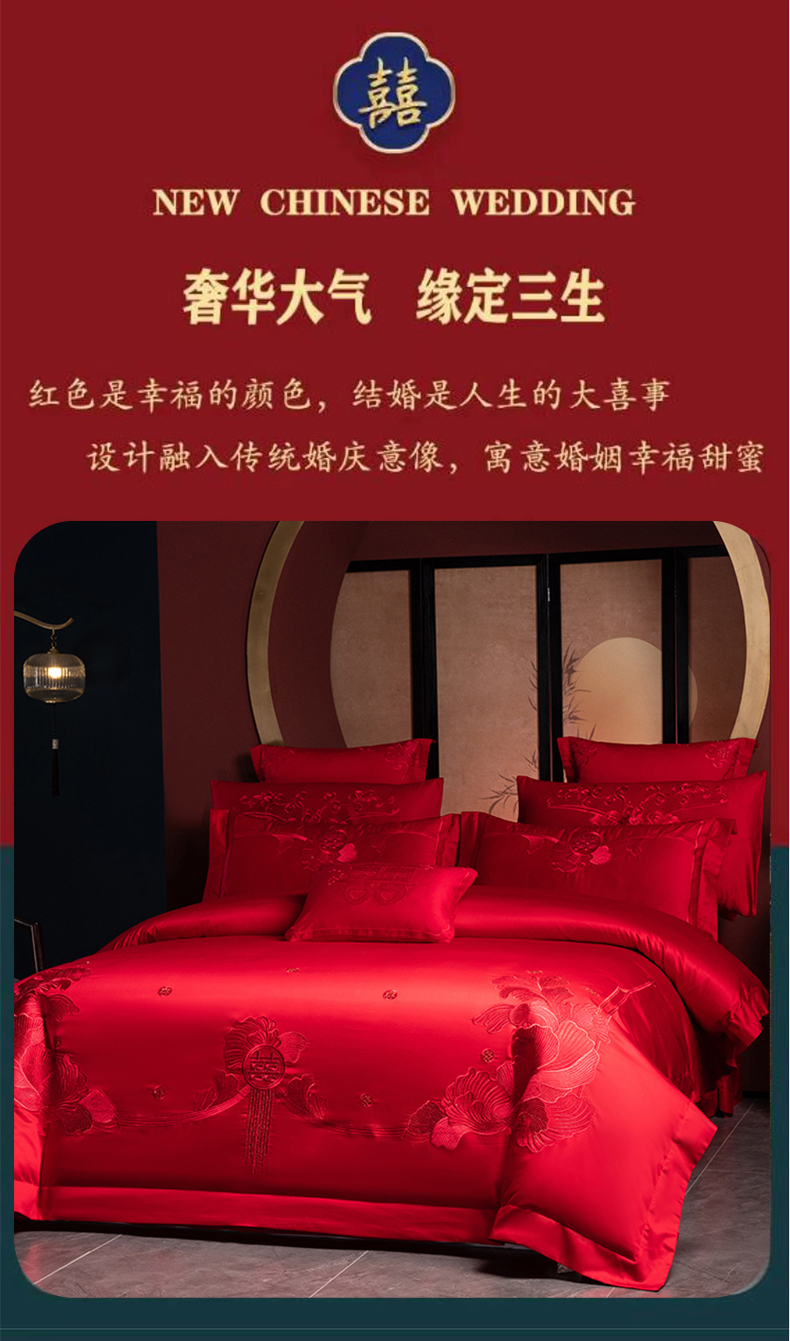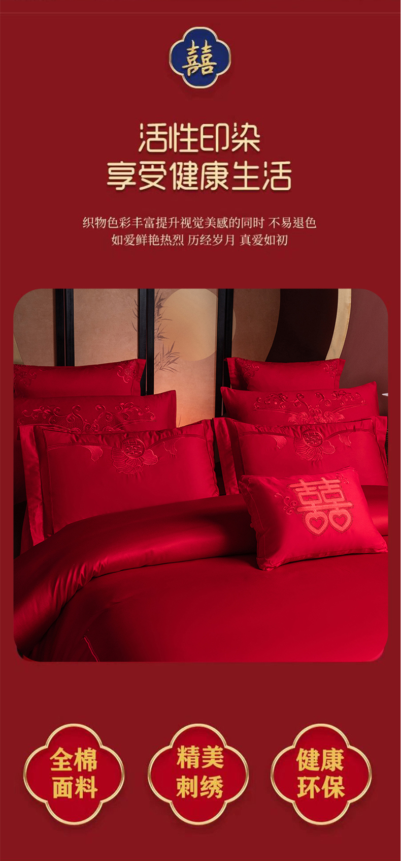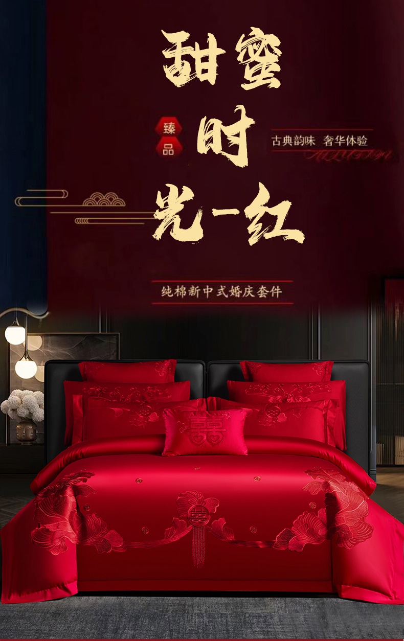 当前位置: 91家纺网 > 商品网购 > 床品套件 > 多件套 > 多件套 > 博之洋婚庆 2025新款全棉长绒棉刺绣新中式婚庆系列多件套 甜蜜时光--红