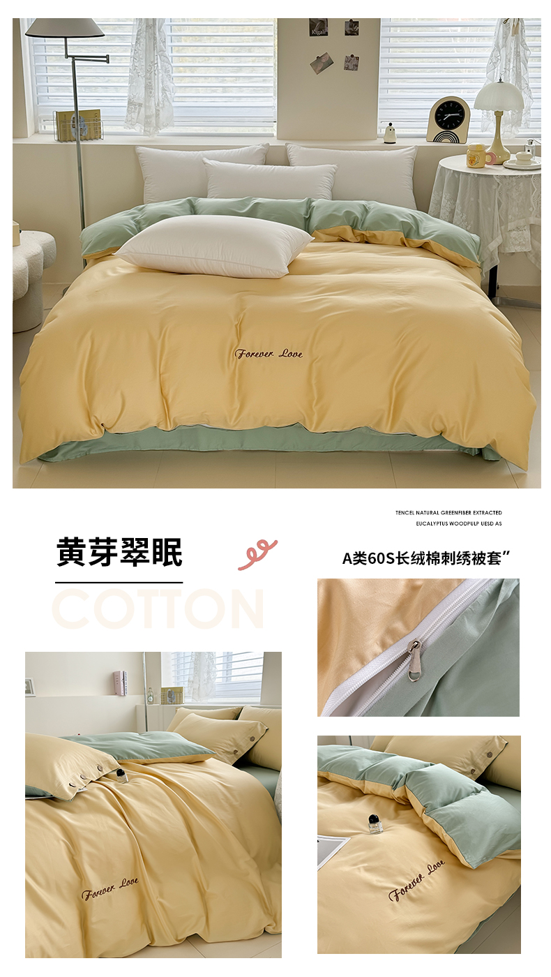 • 91家纺网 家纺一手货源 找家纺 艾迪尚家纺 2025新款A类纯色双拼长绒棉纯棉刺绣系列单品被套 被套单件(有单品 可定制) 黄芽翠眠