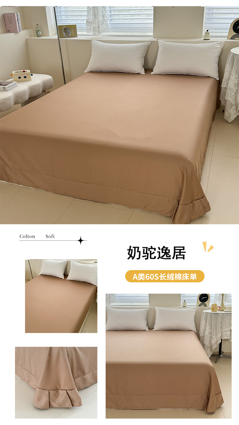 艾迪尚家纺 2025新款A类纯色双拼长绒棉纯棉刺绣系列单品床单 床单单件(有单品 可定制) 奶驼逸居