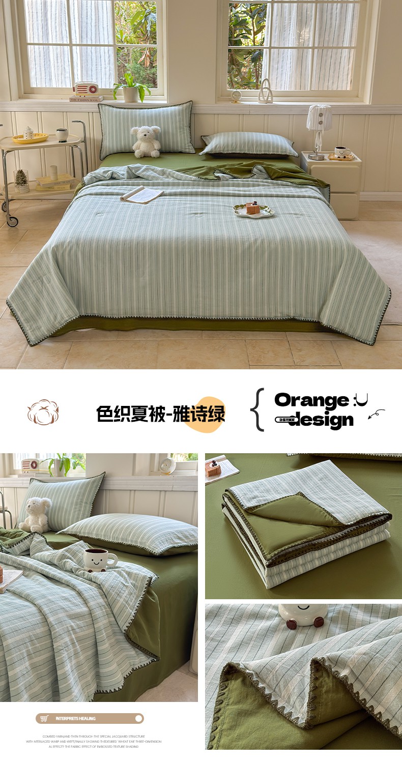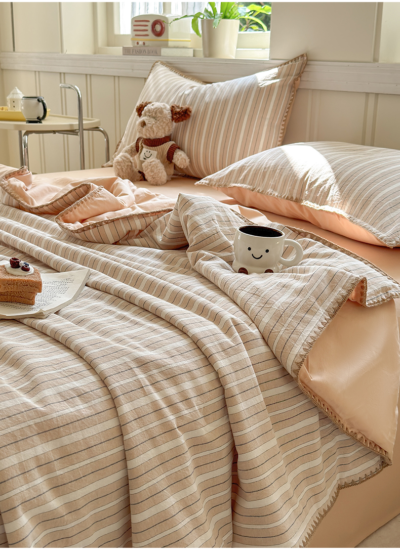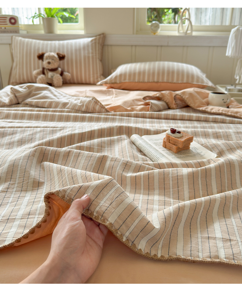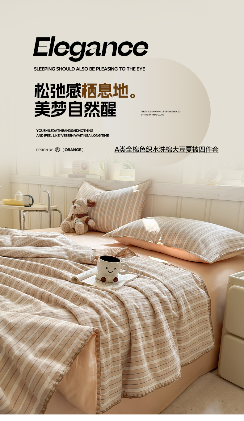 当前位置: 91家纺网 > 商品网购 > 床品套件 > 四件套 > 夏被四件套 > 莱登卡奴 2025新款A类全棉色织水洗棉大豆夏被四件套系列 色织夏被-雅诗奶咖