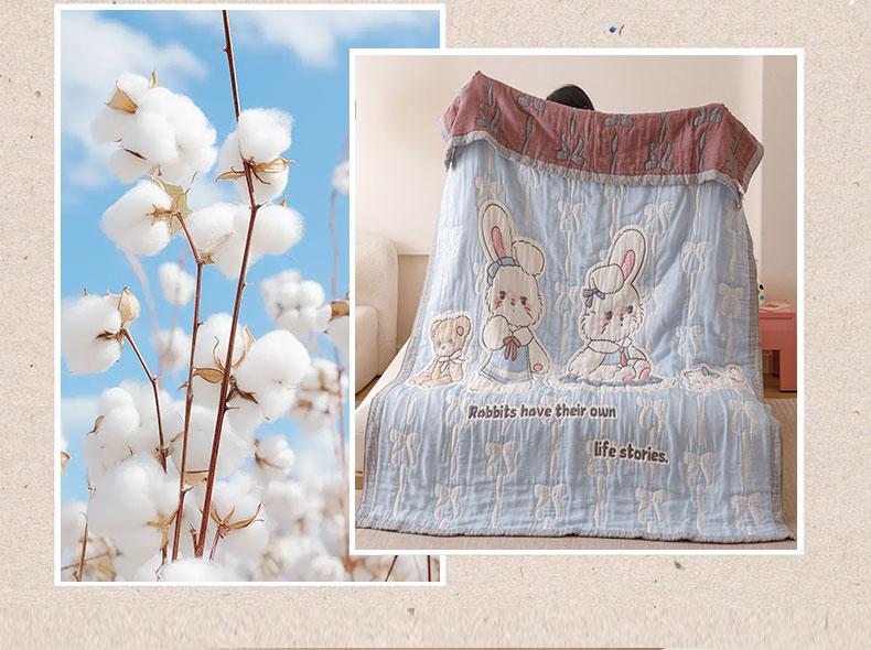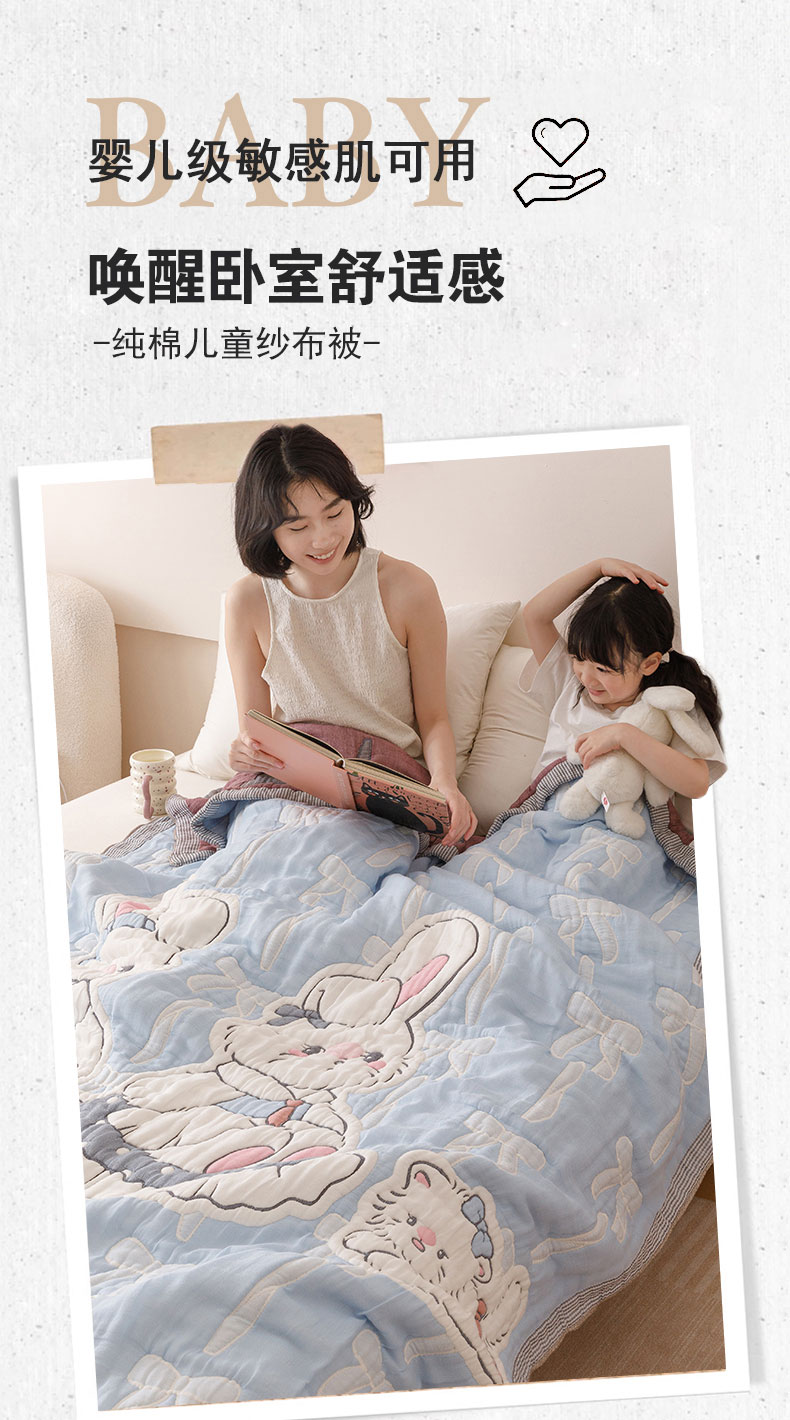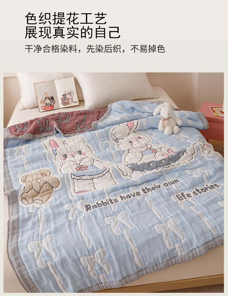 商品名称:麻依 2025新款纯棉儿童纱布被 甜美兔