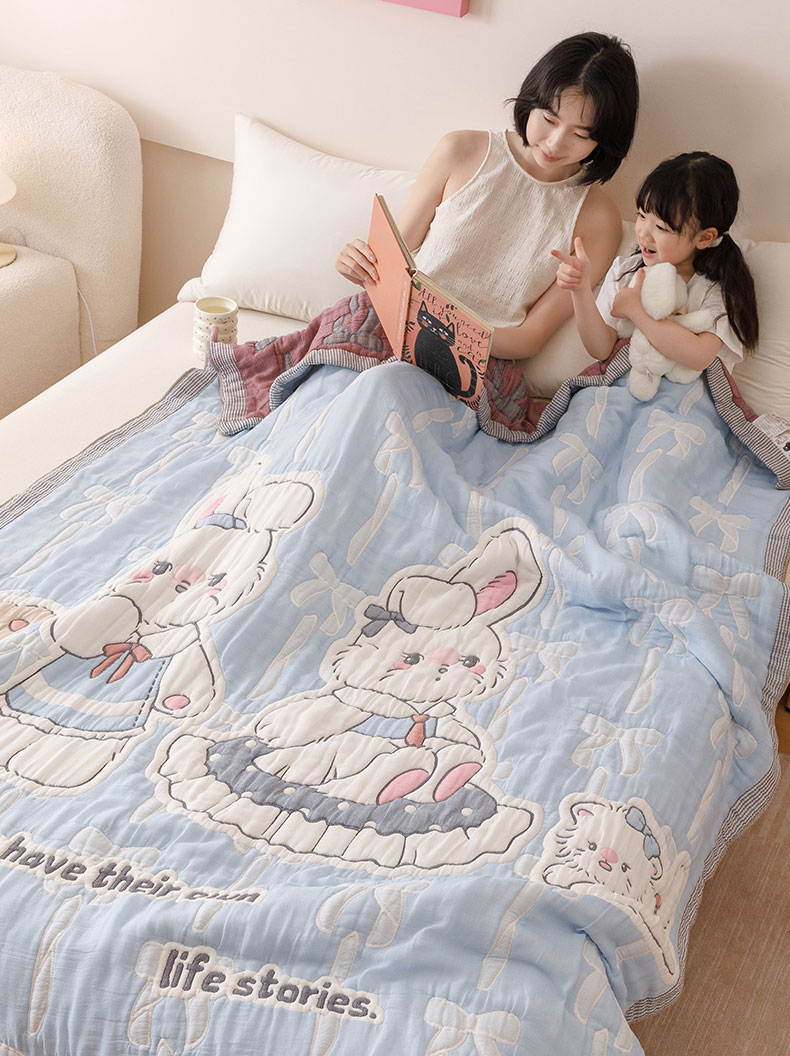 麻依 2025新款纯棉儿童纱布被 甜美兔