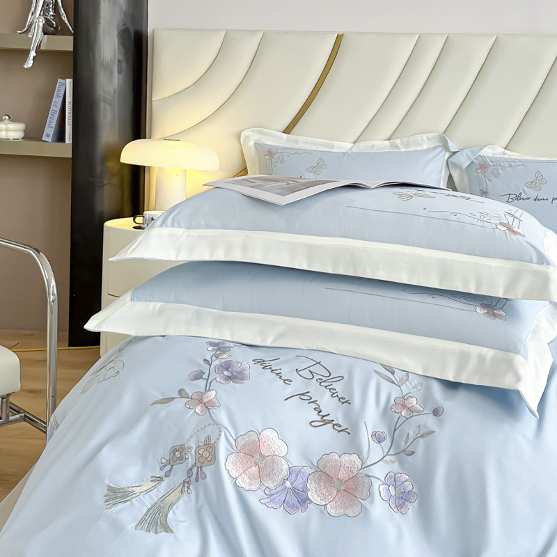 恋之语 2025新款水洗棉刺绣四件套-锦绣花 锦绣花-天蓝