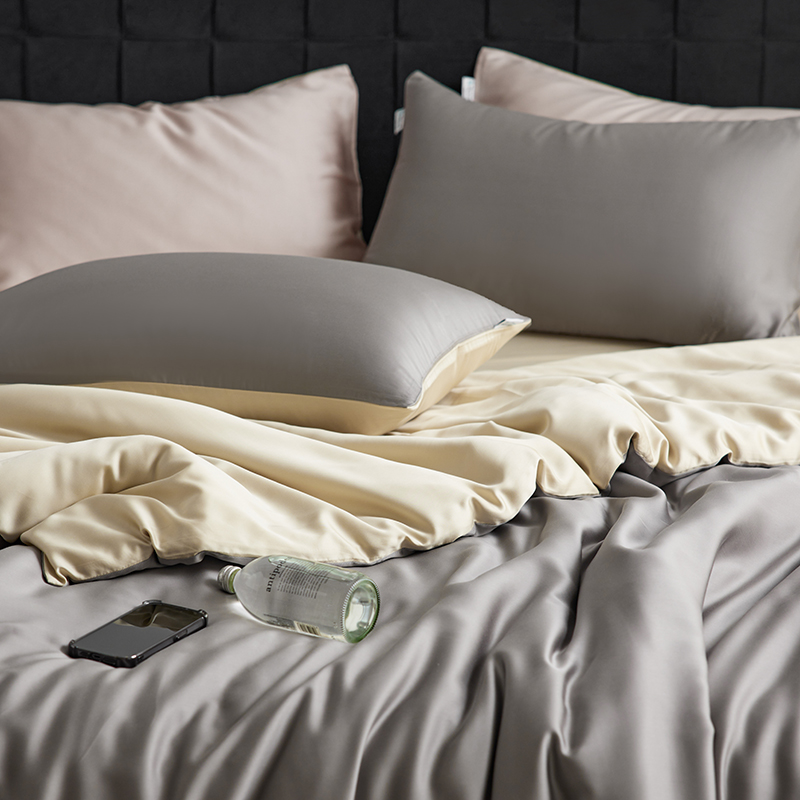 (总)玉宇阁家居 2023新款春夏60支兰精天丝拼色四件套,都市灰香槟,海盐松露,芥末黄香槟,裸粉香槟,茉莉奶绿,浅灰鹅黄,若草乳白