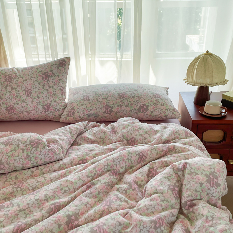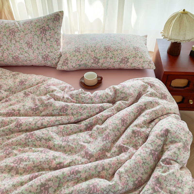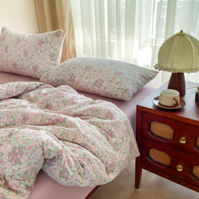 商品名称:一比一家纺 2025新款全棉母婴级抗菌有氧全棉双层纱亲肤全棉小清新印花三件套四件套 清桃粉