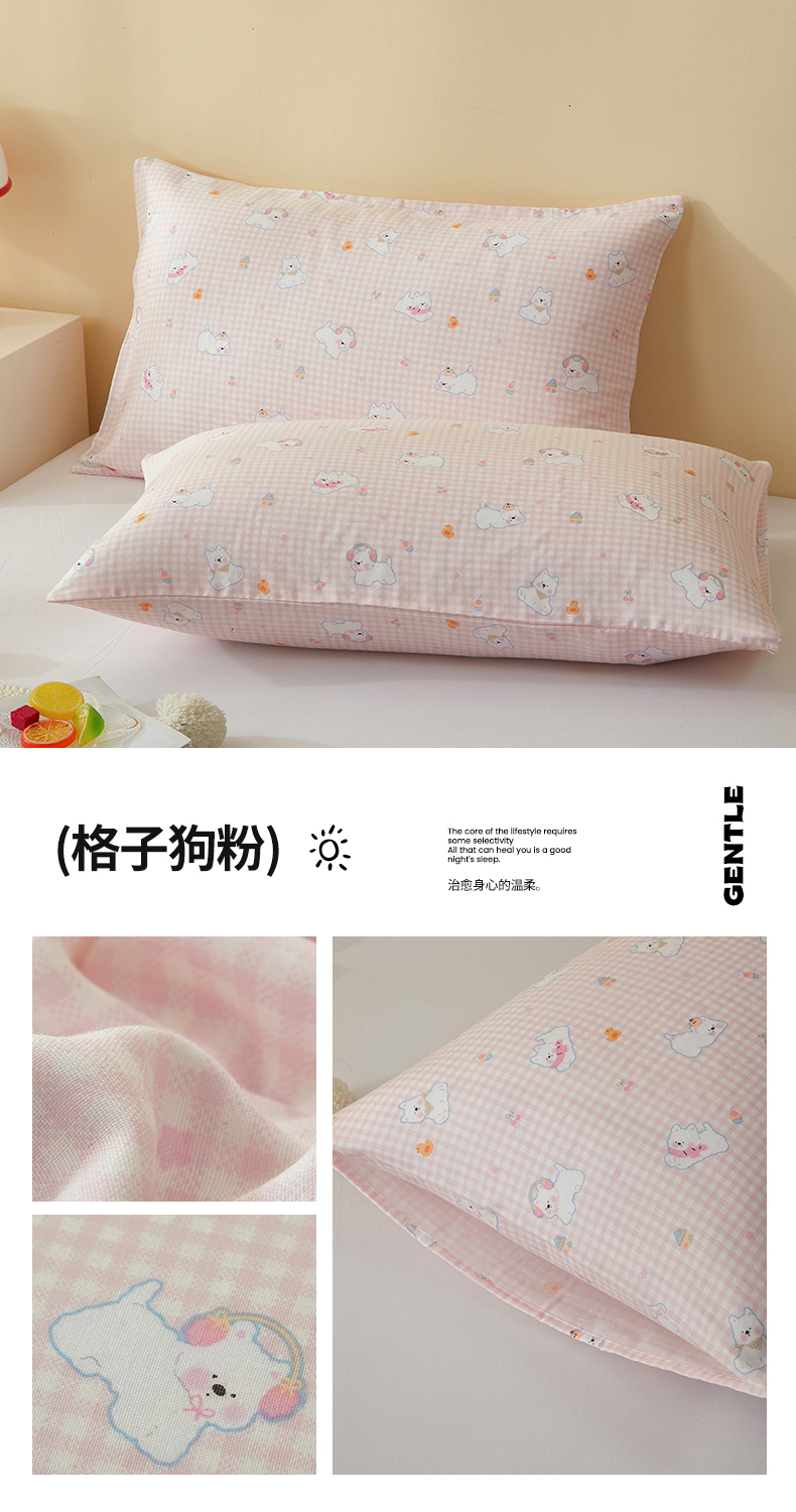 • 91家纺网 家纺一手货源 找家纺 2025款A类母婴级全棉双层纱枕套_4032 格子狗粉