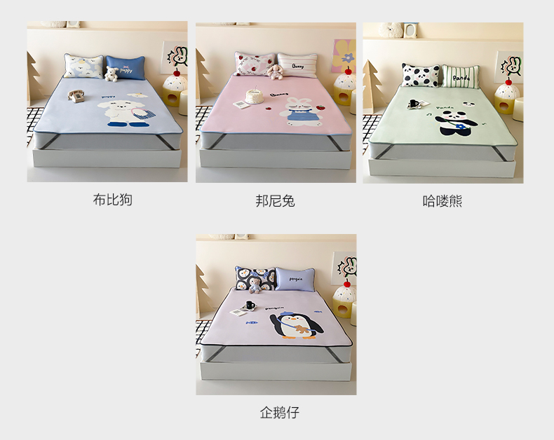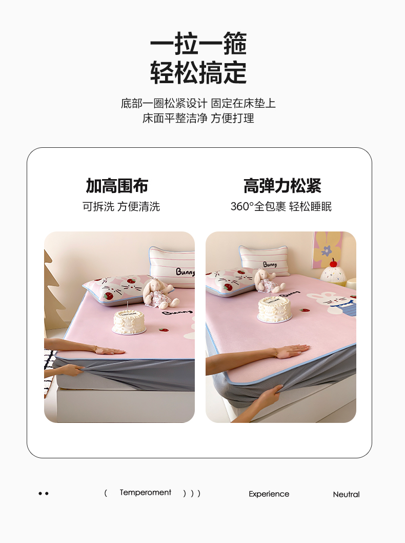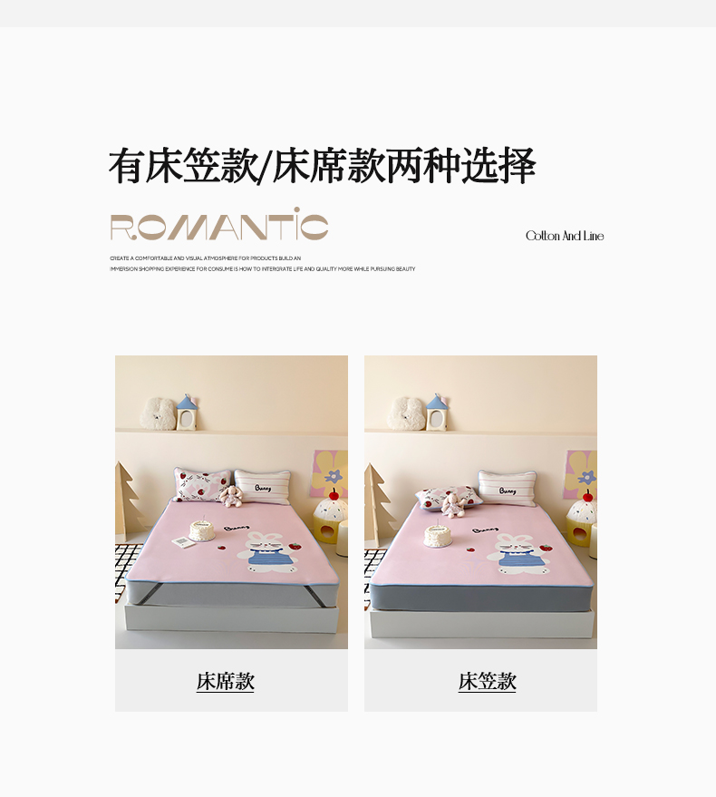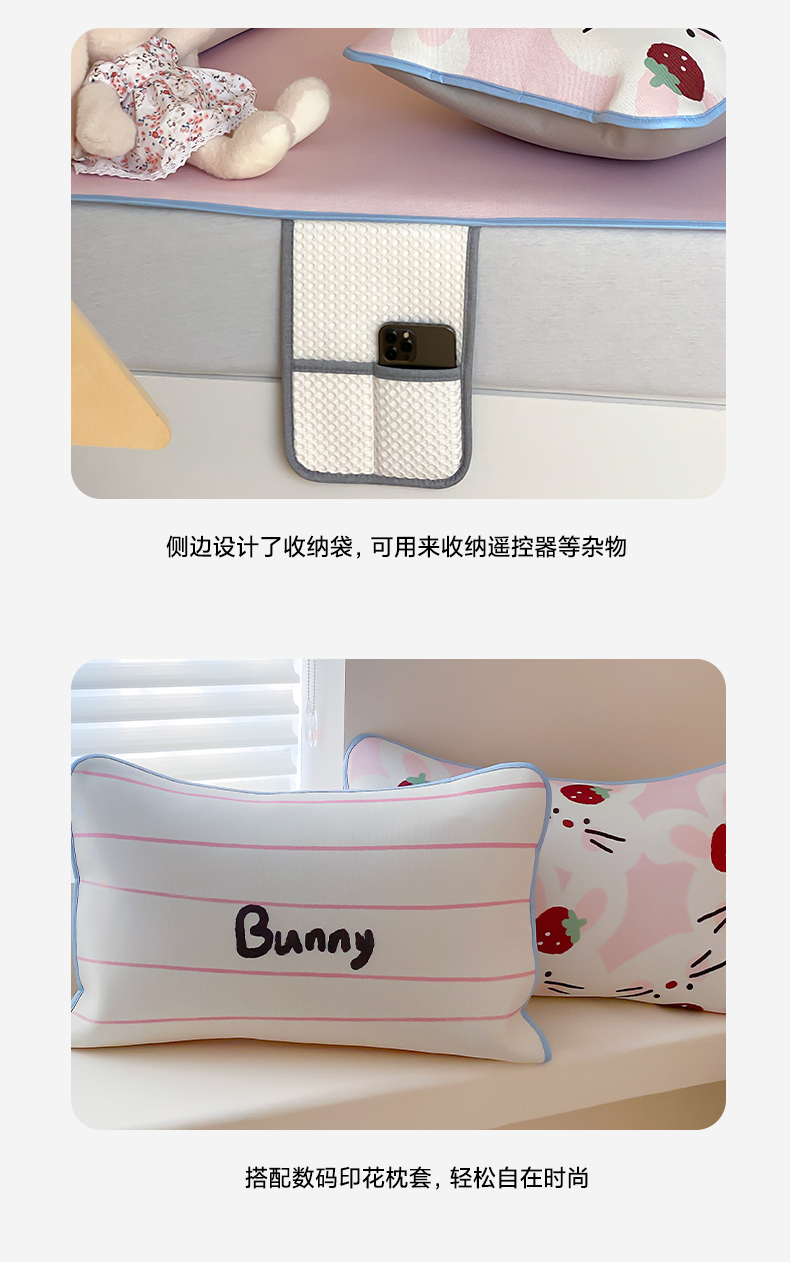 商品名称:三味舒屋 2025新款小可爱系列大版印花冰藤凉席 邦尼兔-床笠款