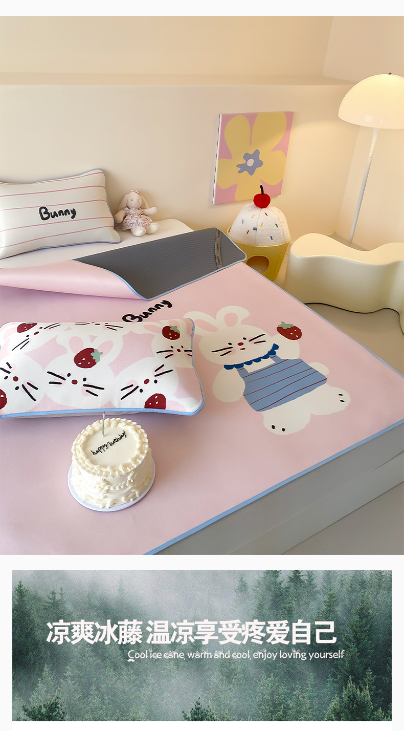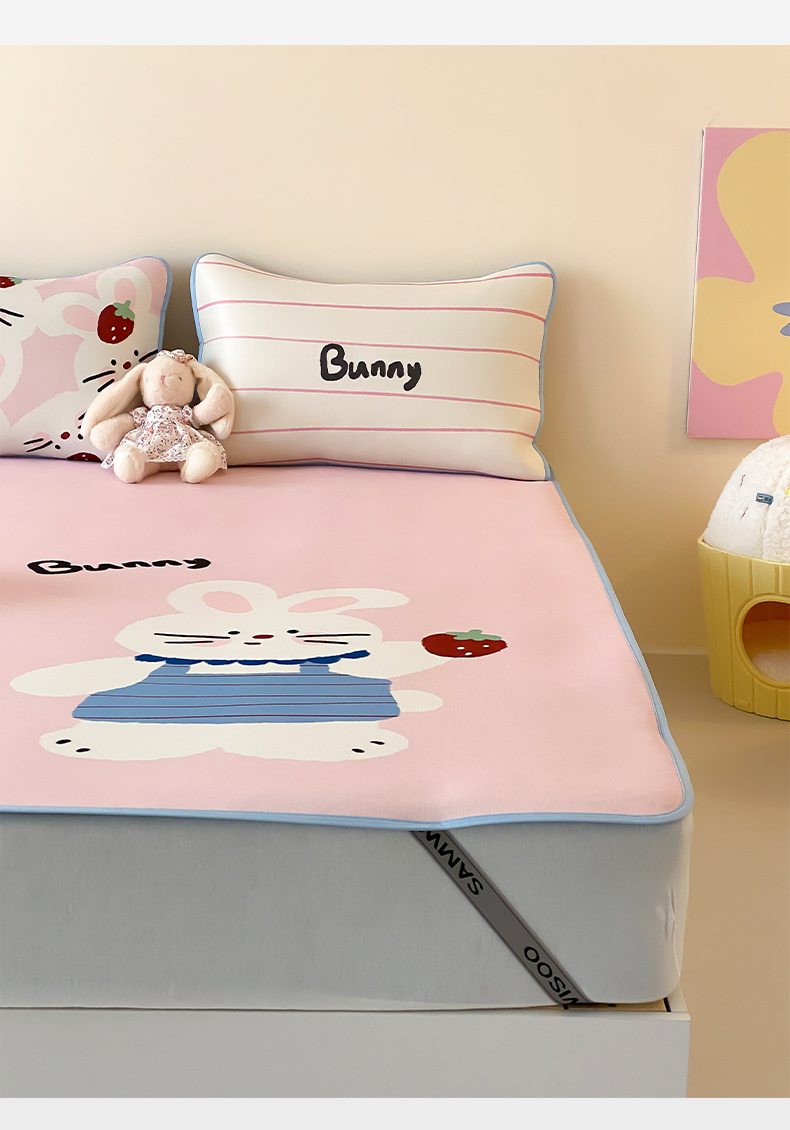 三味舒屋 2025新款小可爱系列大版印花冰藤凉席 邦尼兔-床笠款
