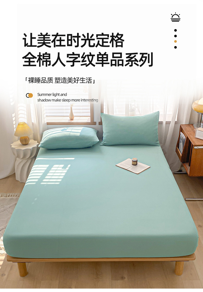 耀悦家纺 2025新款A类人字纹提花水洗棉单品系列-单床单 人字纹-湖蓝
