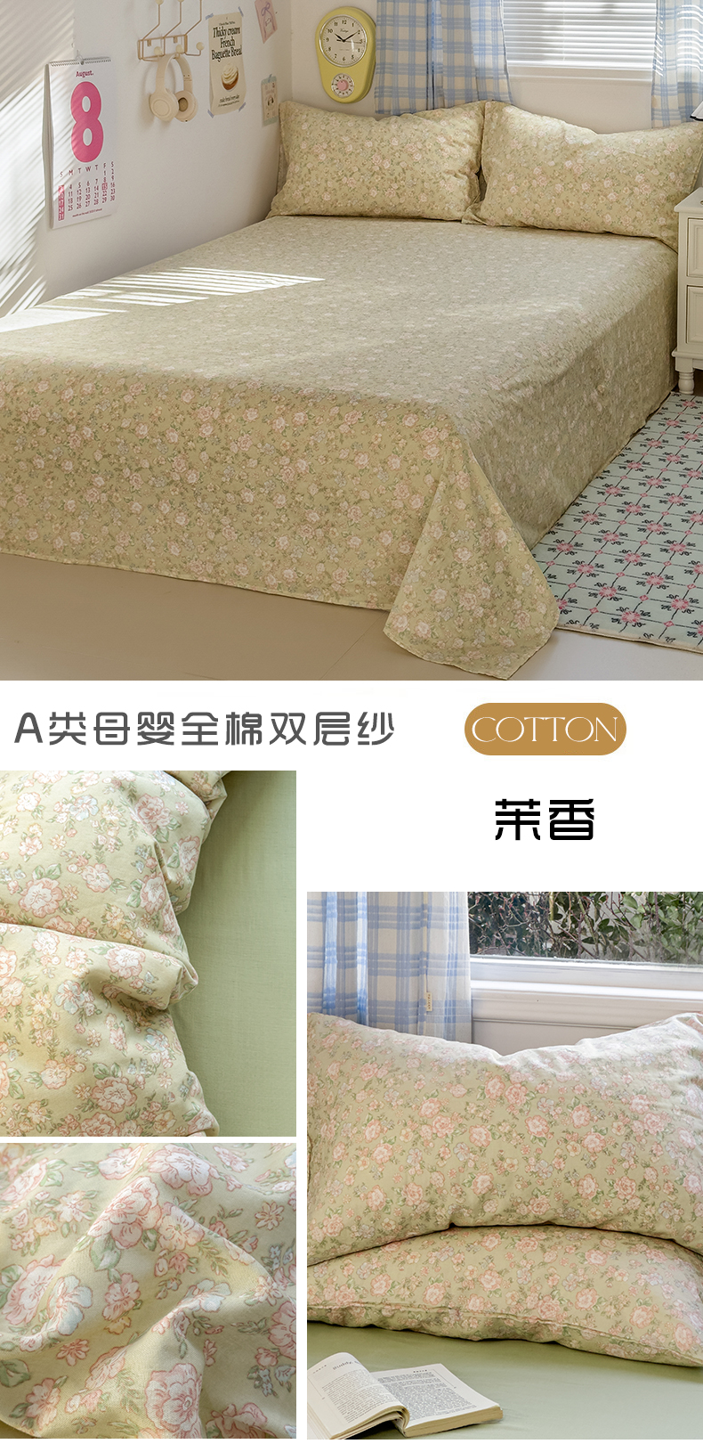 • 91家纺网 家纺一手货源 找家纺 塔塔家居  2025新款全棉纯棉双层纱床单床笠单品 茉香