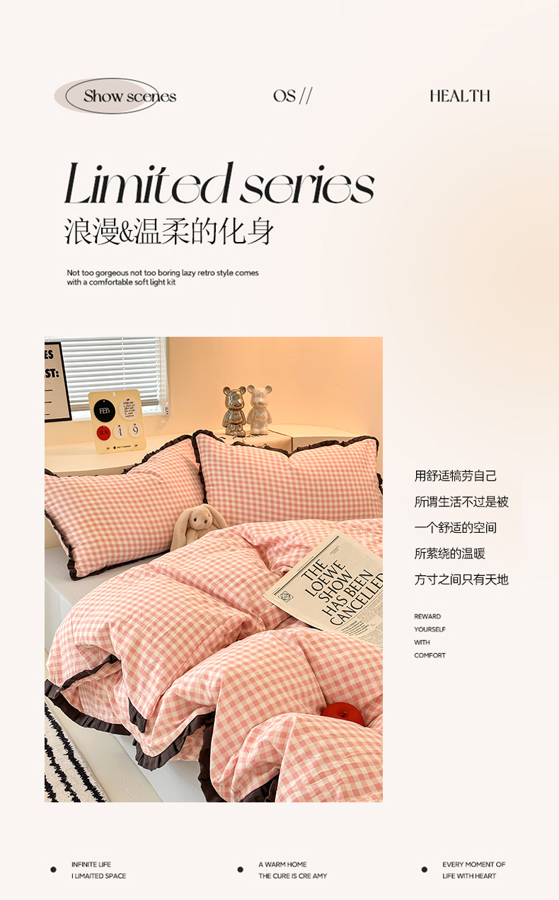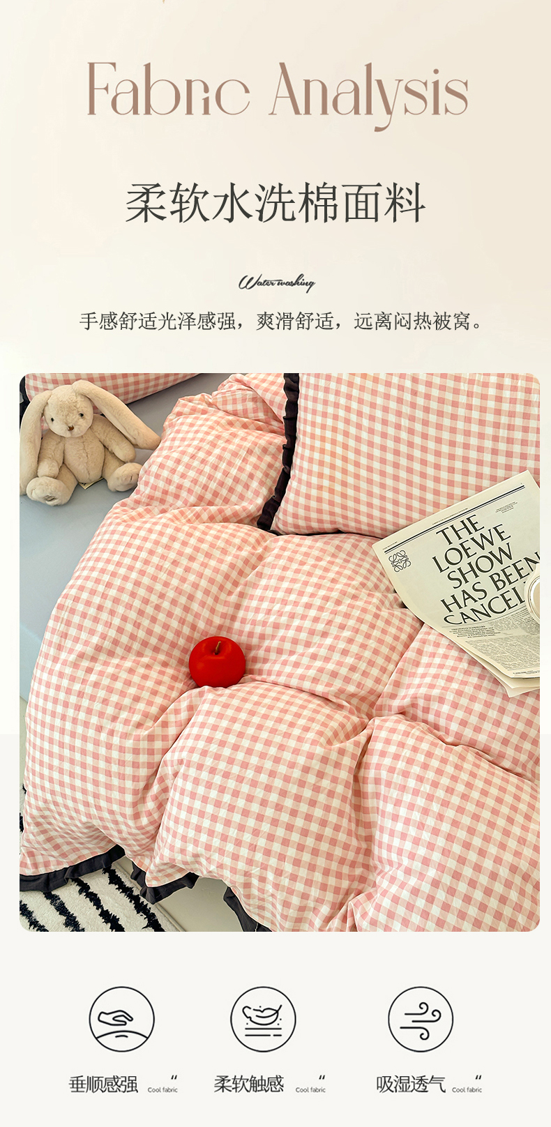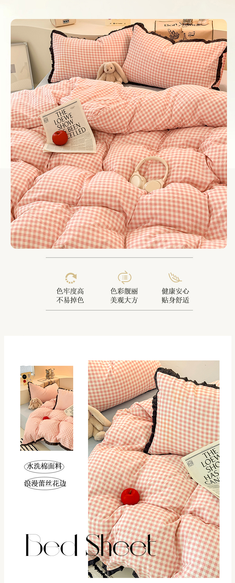 凯洛奇 2025新款1法式小清新蕾丝花边水洗棉四件套-风格一【提供买家秀】 皱皱纱花边-粉小格