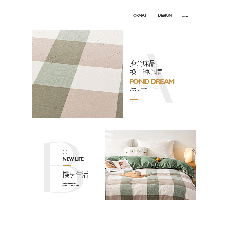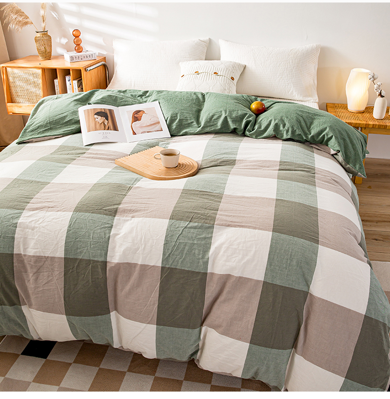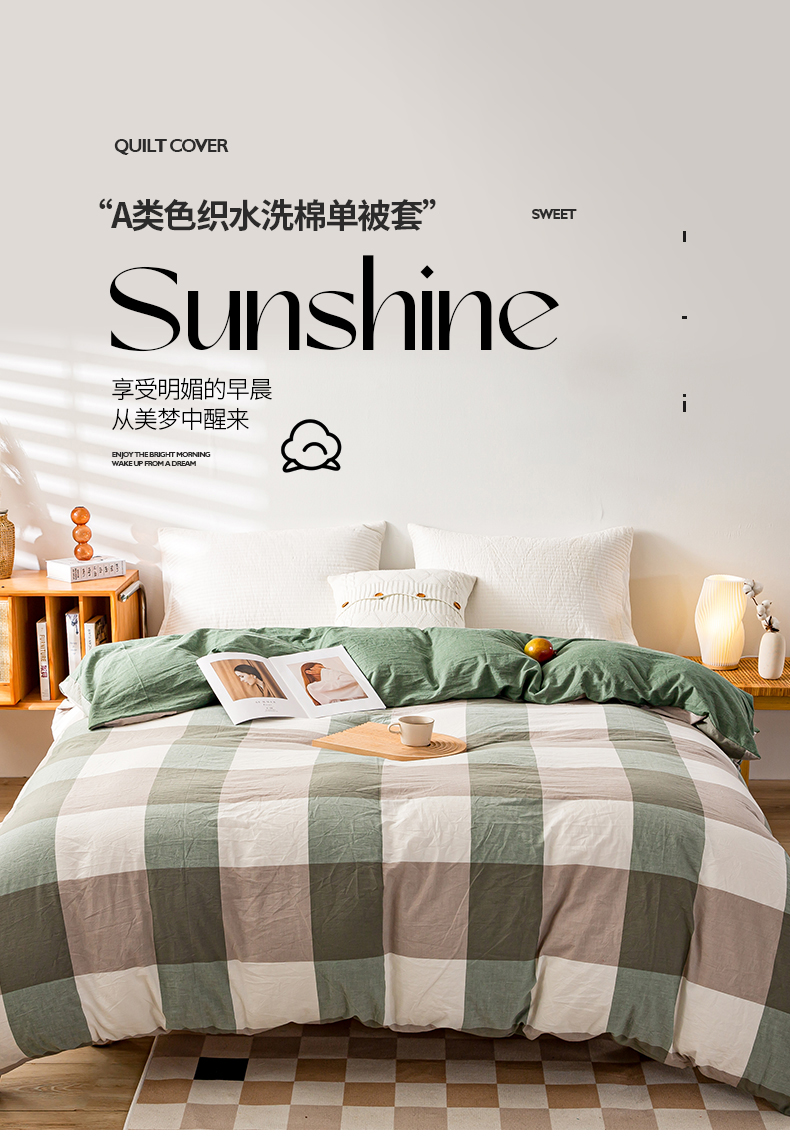 商品名称:2025新款A类色织水洗棉单被套 绿大格