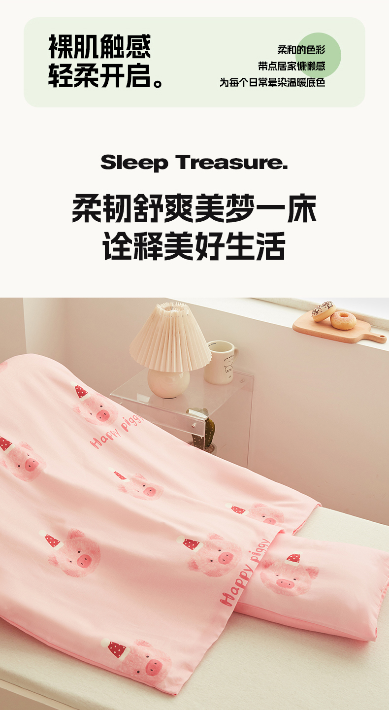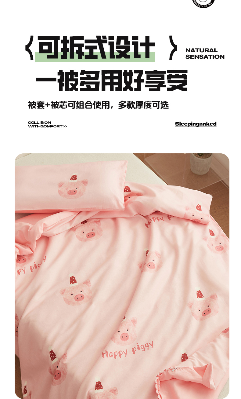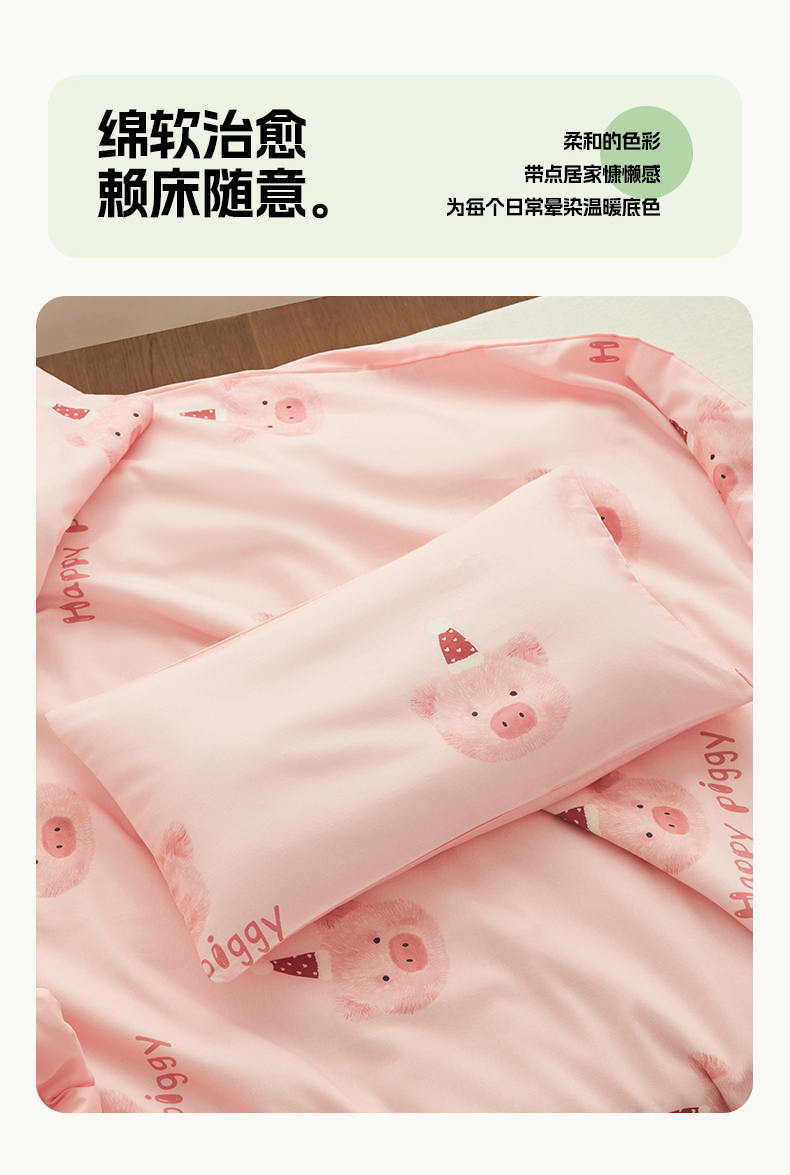 • 91家纺网 家纺一手货源 找家纺 艾佳宝贝 2025A类儿童全棉多功能单被套可拆式夏被四季被子 乖巧萌猪