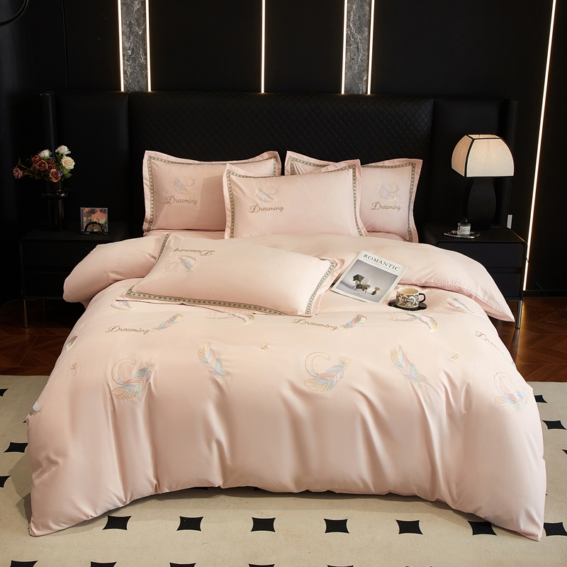 商品名称:佳宇轩 2025爆款水洗棉五彩刺绣四件套简约轻奢织带绣花床单床笠被罩4件套-蜜羽 蜜羽-嫩粉