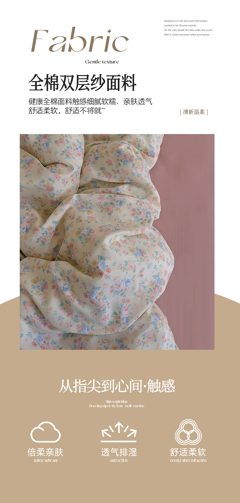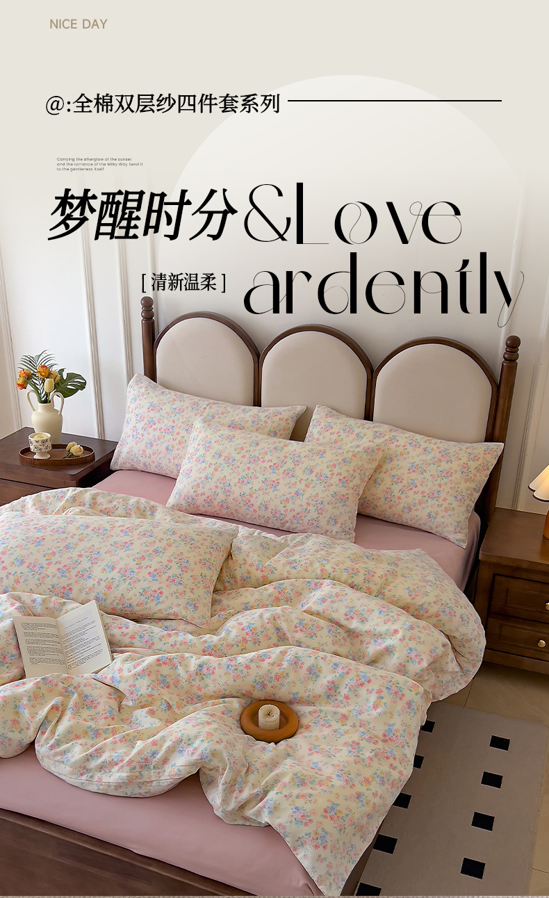 当前位置: 91家纺网 > 商品网购 > 床品套件 > 四件套 > 双层纱四件套 > 优品阁 2025新款人字纹全棉双层纱四件套 花海【升级款-提花人字纹床单】