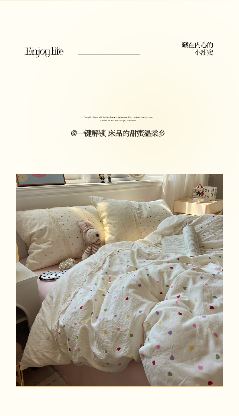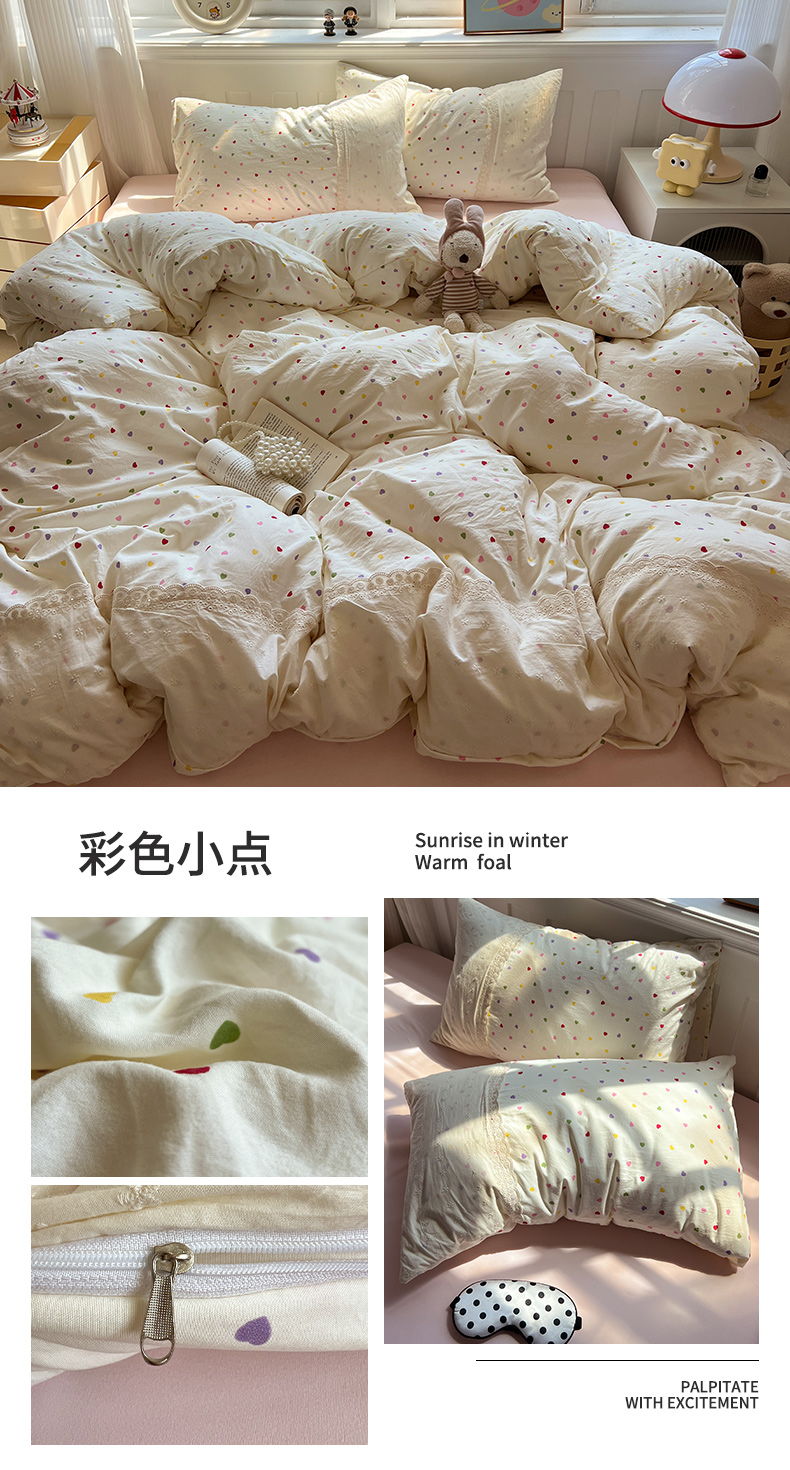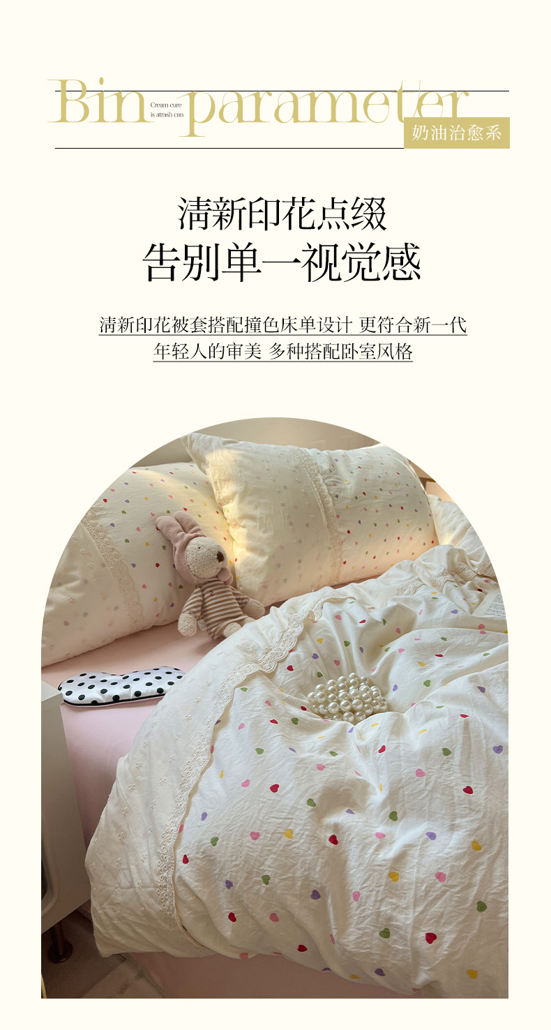 韩都家居 2025春夏新款蕾丝花边云感双层纱四件套 彩色小点