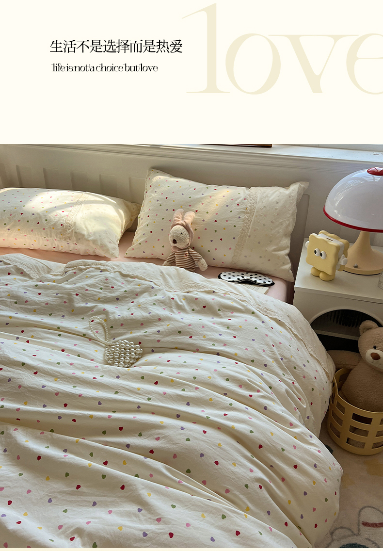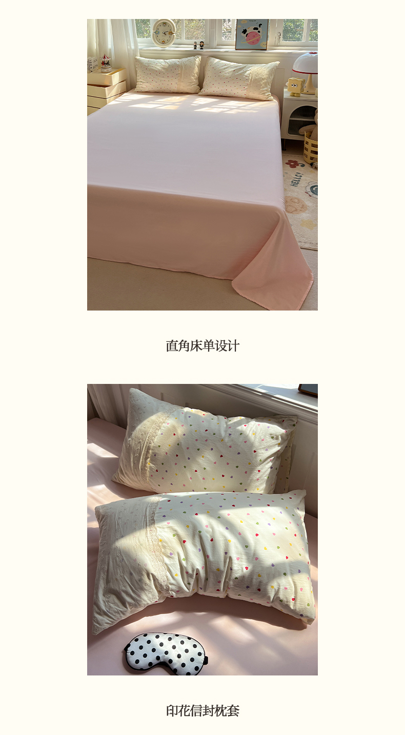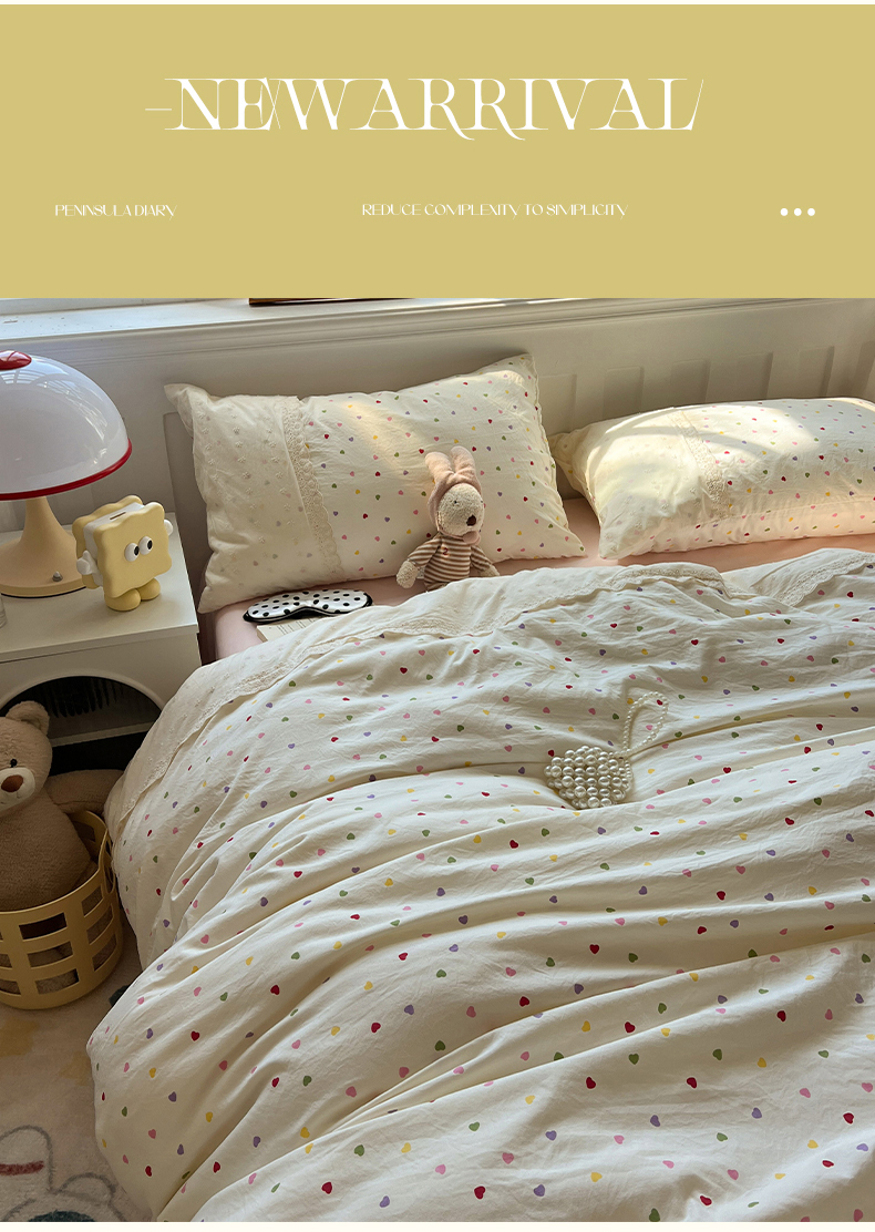 韩都家居 2025春夏新款蕾丝花边云感双层纱四件套 彩色小点