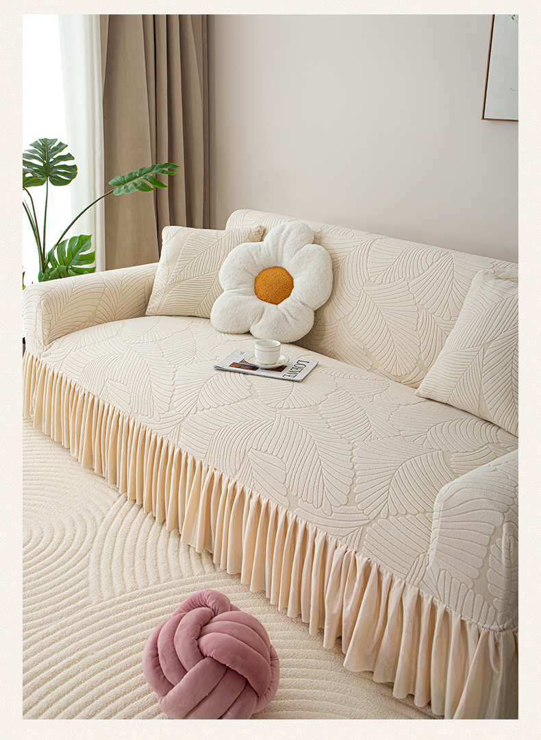 沐沐家纺 2026新款晨露裙边款沙发套 孔雀蓝